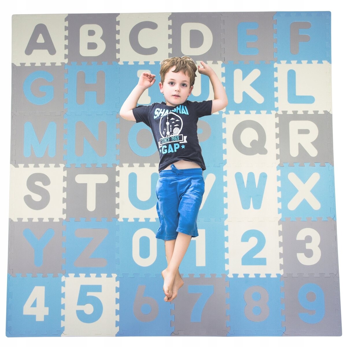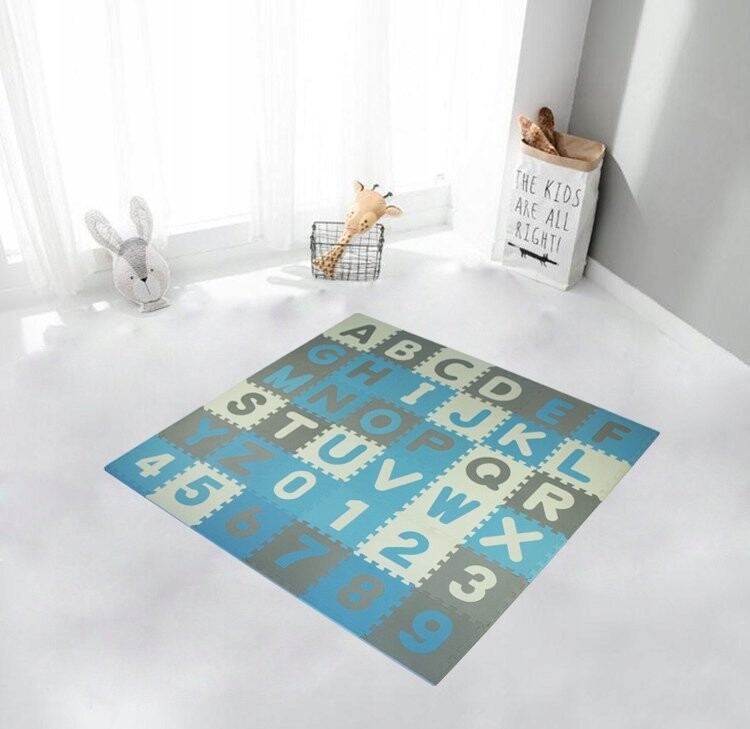 Коврик создан в нейтральных, контрастных цветах и в виде алфавита A-Z и цифр 0-9 , что будет способствовать обучению , творчество и любознательность детей и взгляд родителей .