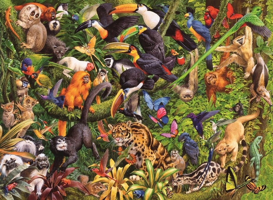 Содержимое коробки:пазл из 200 деталей с мотивом тропического леса.