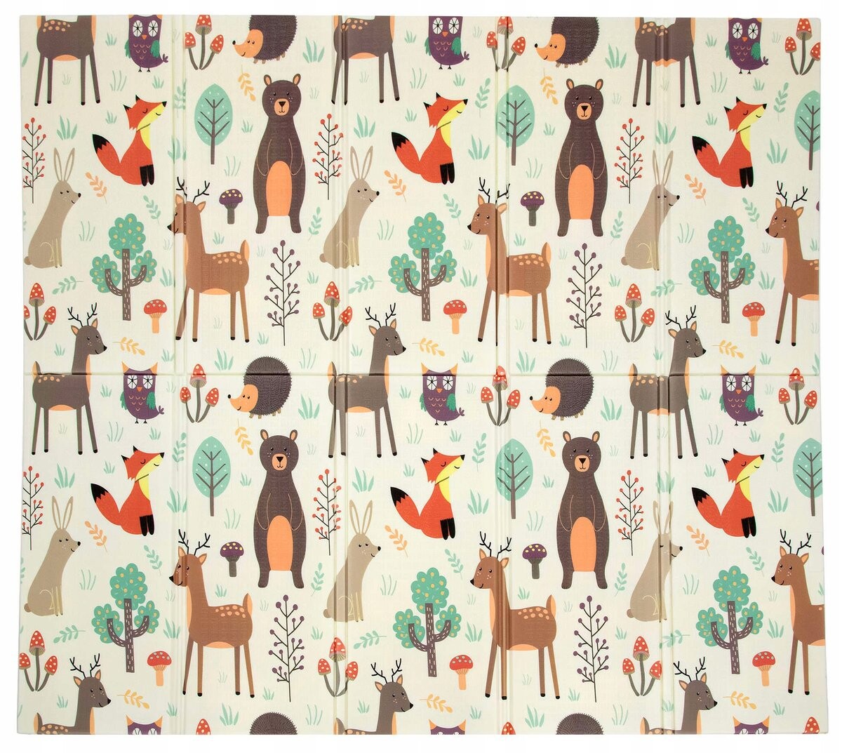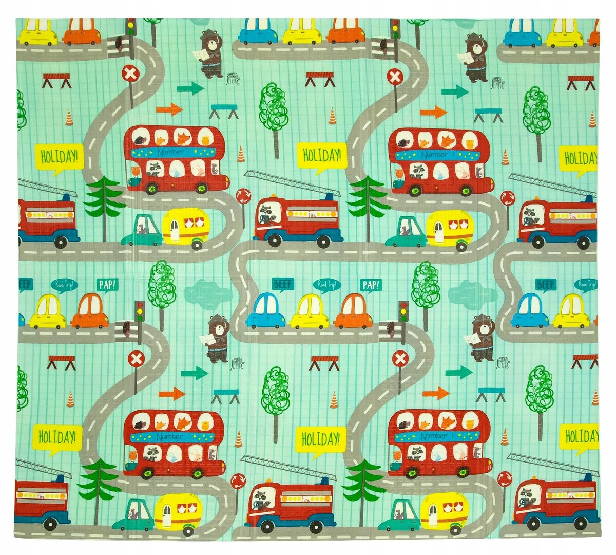Коврик имеет двусторонний принт с интересными для ребенка картинками.
