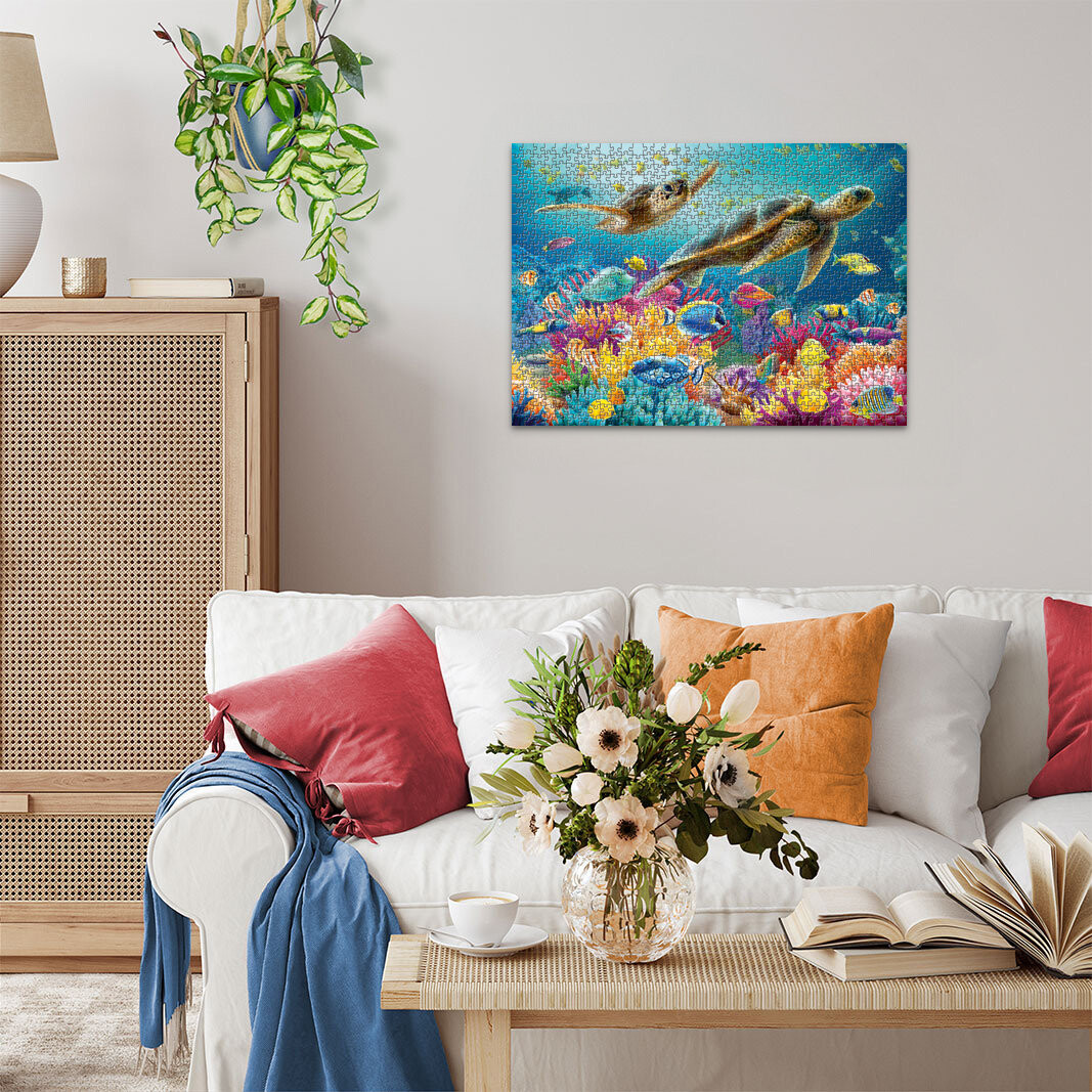 Содержимое коробки:пазл из 1000 деталей на тему «Подводный мир».