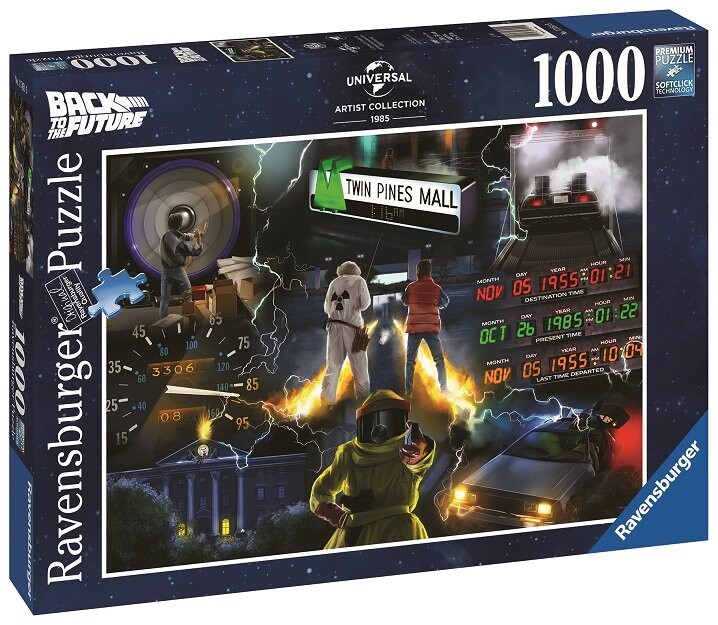 Пазлы могут представлять собой различные темы, например, пейзажи, животные, архитектурные объекты или известные произведения искусства. Также есть головоломки разной сложности. от простого для детей до более сложного для людей, которые любят сложные задачи. Пазл – уникальная и интересная игра. Это также способ расслабиться и провести время с пользой. Пазл Ravensburger из 1000 деталей на тему «Назад в будущее». Размеры головоломки в собранном виде составляют 70 х 50 см. Ravensburger — крупнейший производитель пазлов в мире, который производит уже более 130 лет. Пазлы Ravensburger имеют антибликовое покрытие – они изготовлены из запатентованного, плотного картона с мягкой подкладкой (картинка напечатана на бумаге со структурой льняного волокна, что снижает светоотражение, облегчает сборку, а саму картинку , независимо от размера головоломки более понятно). Более того, благодаря запатентованной технологии SoftClick каждый отдельный кусочек пазла Ravensburger имеет уникальную форму и помещается только в одном месте. Формы пазлов разнообразны благодаря кубику ручной работы. Пазлы Ravensburger устойчивы к изгибу.