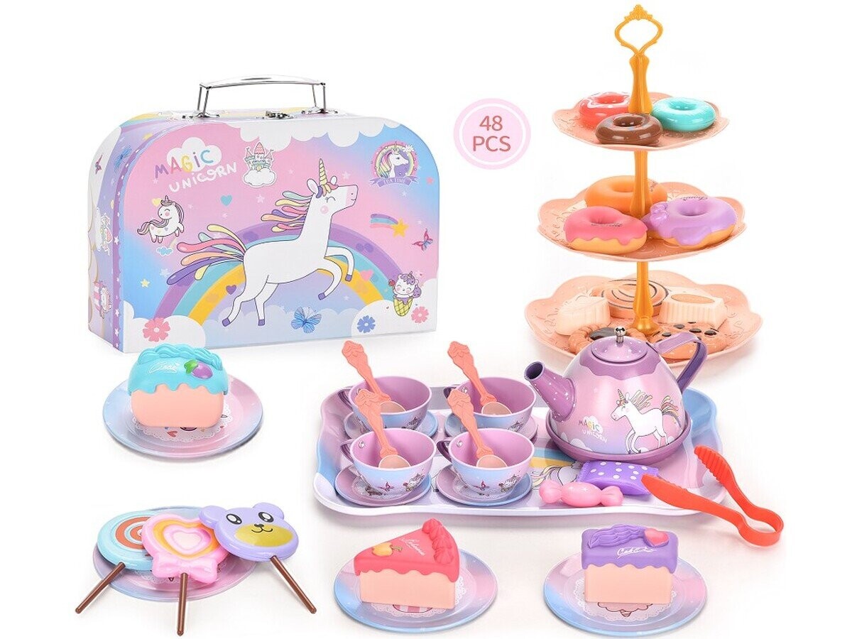 • Кофейный набор в коробке, Чайник, Чашки, Сладости + Аксессуары Игра на кухне – одна из любимых игр детей. Подарите своему ребенку этот замечательный набор игрушечных аксессуаров и позвольте ему развить свою сладкую страсть. Время чего-нибудь вкусненького! Кофейный набор содержит практически все необходимое для приготовления идеального кофе и сладкого лакомства. Девушкам, которые любят экспериментировать на кухне, он обязательно понравится. Вкусное удовольствие гарантировано! В нашем распоряжении целый набор товаров: чайник, чашки, поднос, кусочки торта, пончики и другие сладости, тарелка и множество дополнительных аксессуаров. Игрушка отличается качеством и вниманием к деталям – она прекрасно имитирует игру в настоящем кафе. Многочисленные аксессуары и красивые, яркие цвета привлекают внимание детей и надолго их развлекут. много часов. Практичная коробкаВсе было упаковано в оригинальную упаковку — практичную коробку, в которую можно спрятать все после игры. Кейс имеет ручку, что позволяет легко брать его с собой. Набор идеален в качестве подарка. В комплект входят: чайник, 4 чашки с блюдцами, 4 тарелки, 4 чайные ложки, поднос, складная тарелка, различные виды сладостей, оригинальная упаковка - коробка. Спецификация: Количество элементов: 48 Для детей: старше 3 лет Размеры корпуса: прибл. 25, 8 x 18, 5 x 10 см. Диаметр тарелки: 9 см. Размеры подноса: прибл. 24 в х 15, 2 см