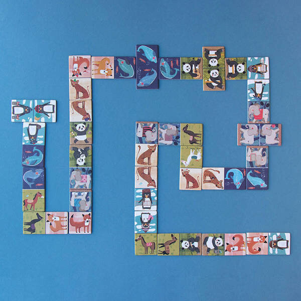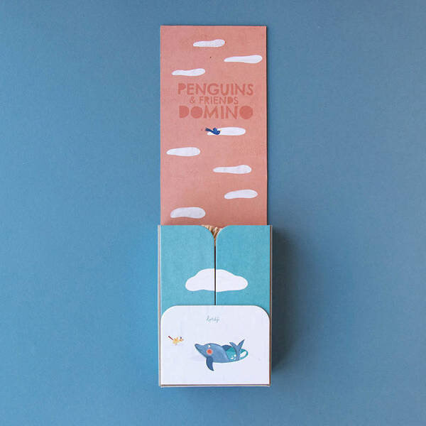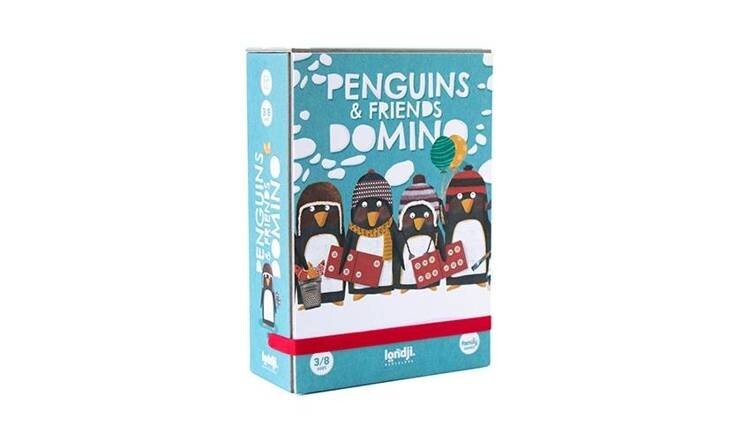 28 частей классического домино, расставив кубики домино точками вниз, вместе с друзьями пингвина ребенок создаст сказочный рисунок.