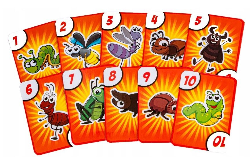 ➡Раздающий перетасовывает красные карты. затем кладет один на стол. Задача игроков - как можно быстрее сбить нарисованного жука