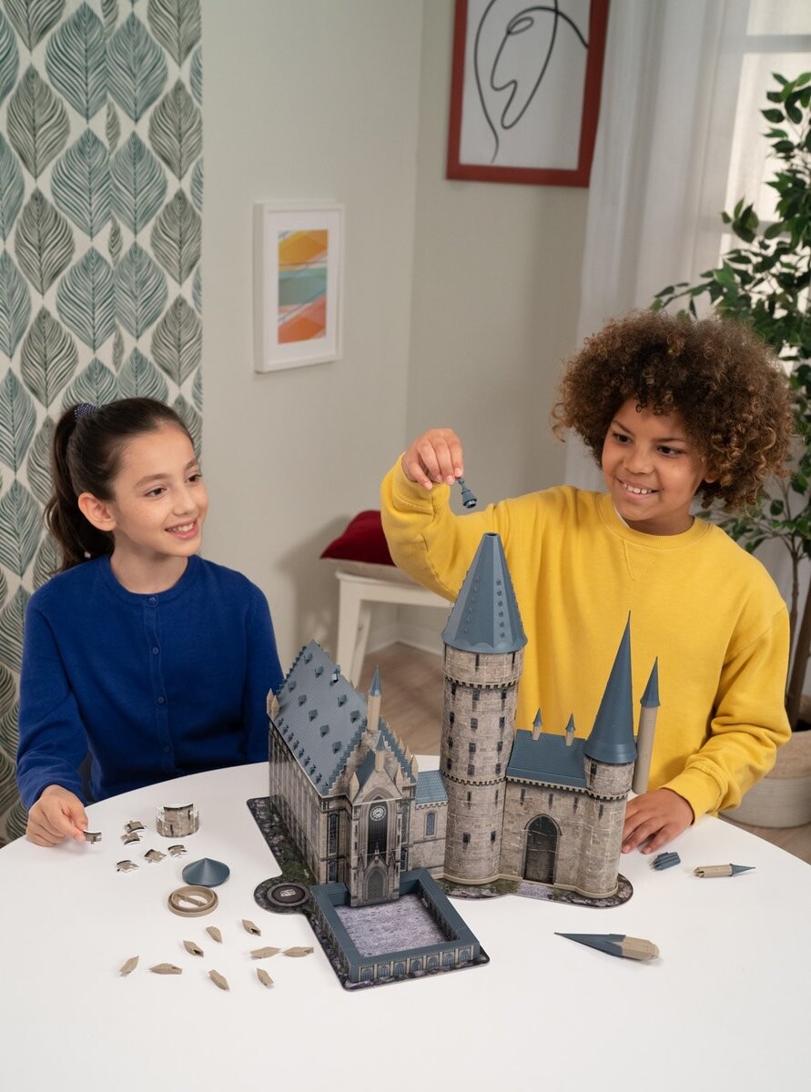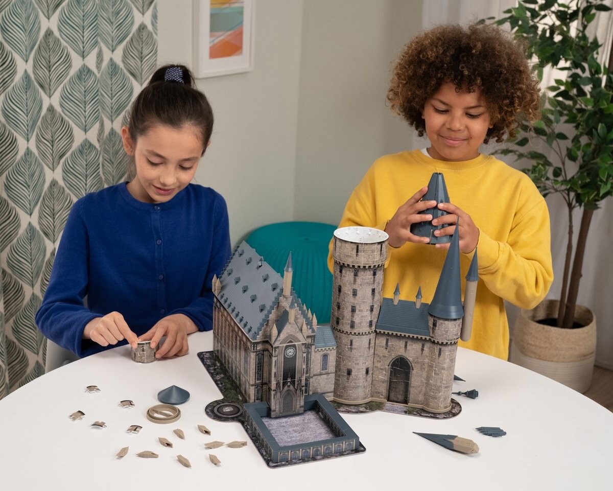 Перенеситесь в волшебный мир Гарри Поттера и постройте замок Хогвартс! Это необыкновенный продукт для любителей книг и фильмов о Гарри Поттере, сочетающий в себе возможность играть с пространственными головоломками и создавать декоративный элемент комнаты. Уникальная коллекция 3D-конструкций в виде пазлов наверняка порадует каждого ребенка и подростка. или коллектор. Эта уникальная модель содержит точно воспроизведенные детали и качество изготовления, соответствующее зданию из фильма.