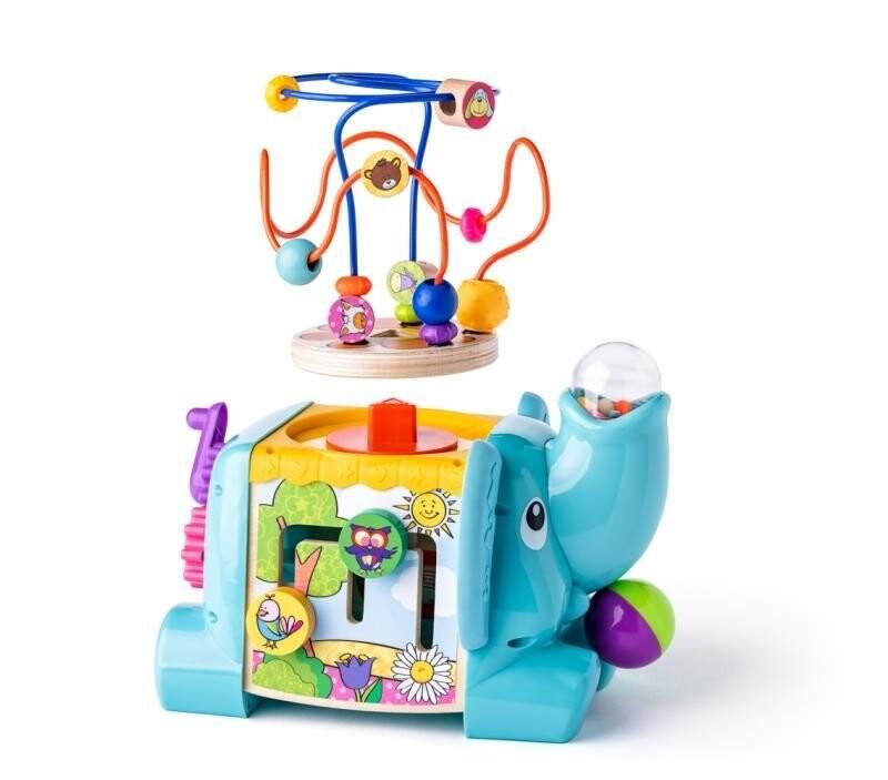 Голубой слон, полный развлечений для вашего малыша, ждет, чтобы его открыли. В этот развивающий набор входит множество аттракционов: