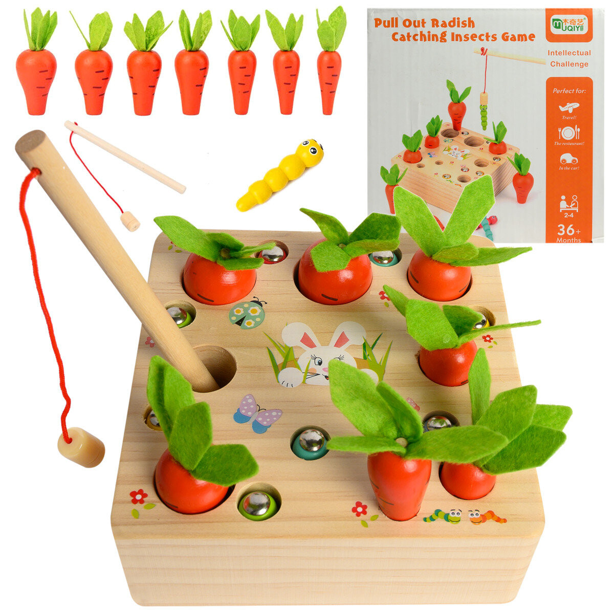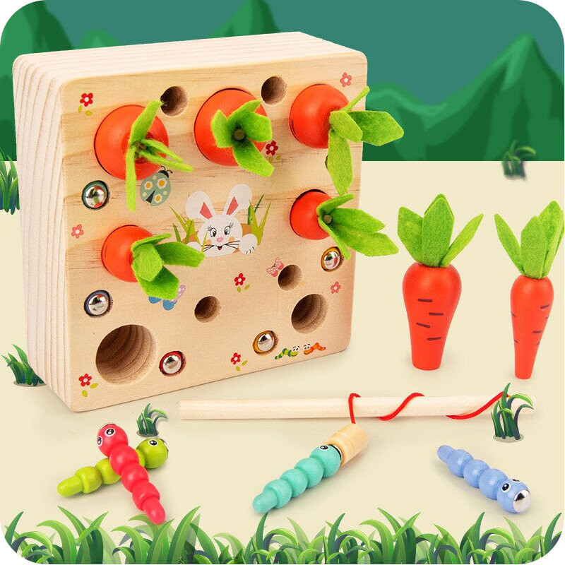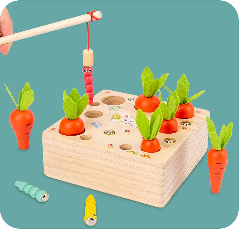 Вы можете использовать удочку, чтобы вставлять или вынимать разноцветных червей из нор, у каждого из которых есть магнит в голове. Червячков можно рисовать как в случайном порядке, так и по цвету.