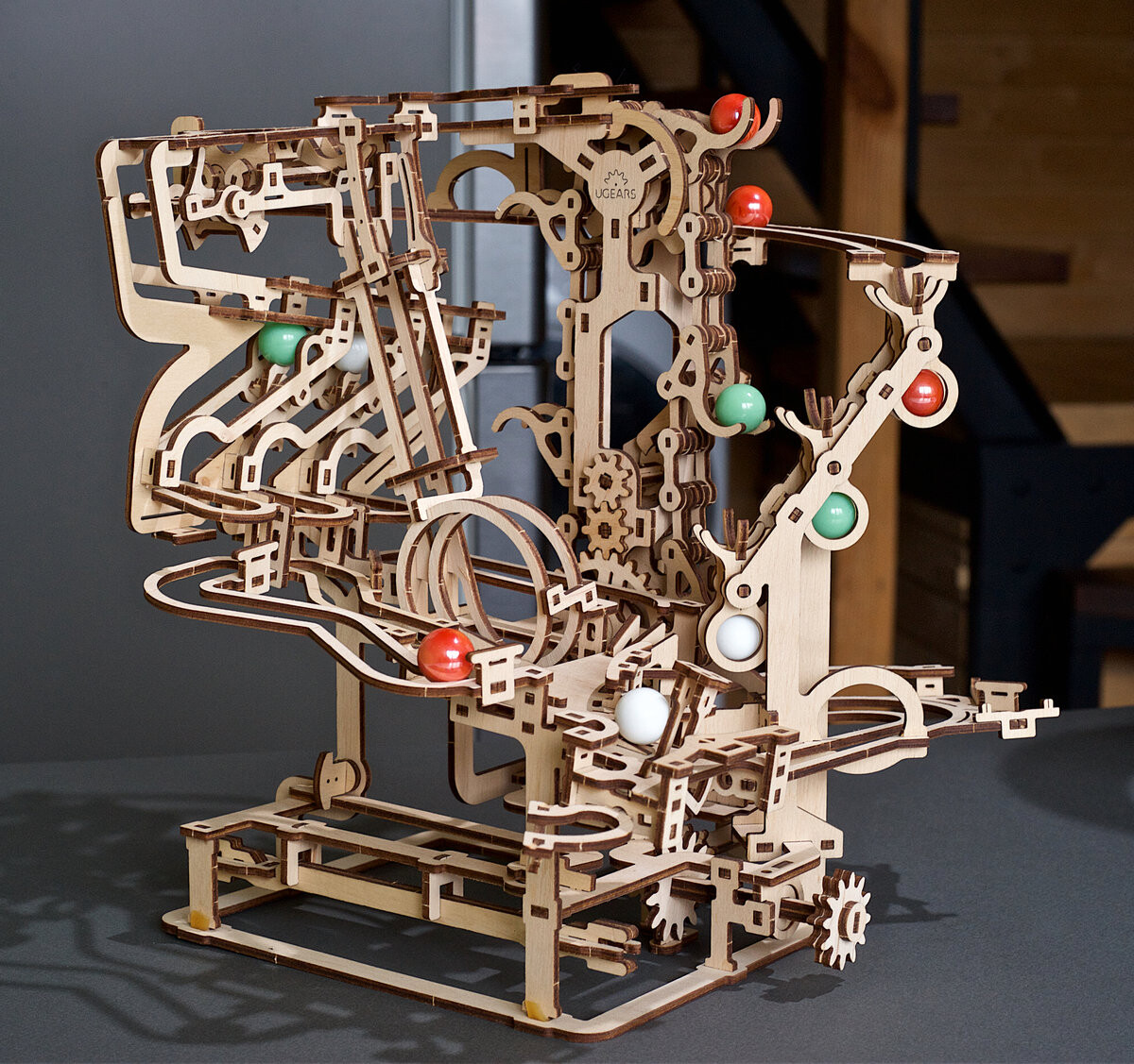 Весело не заканчивается на сборке. В случае статичных моделей готовая модель часто лежит на полке и собирает пыль. В случае с Ugears это не так! Когда вы закончите собирать эту модель, самое интересное только начинается! Смотрите, как деревянная головоломка оживает, когда вы поворачиваете рукоятку. отправить шарики в их приключение. Для тех, кто ищет игрушку, которая доставит удовольствие более 5 минут, дорожка для шариков обязательно привлечет внимание. Технические характеристики Marble Run: