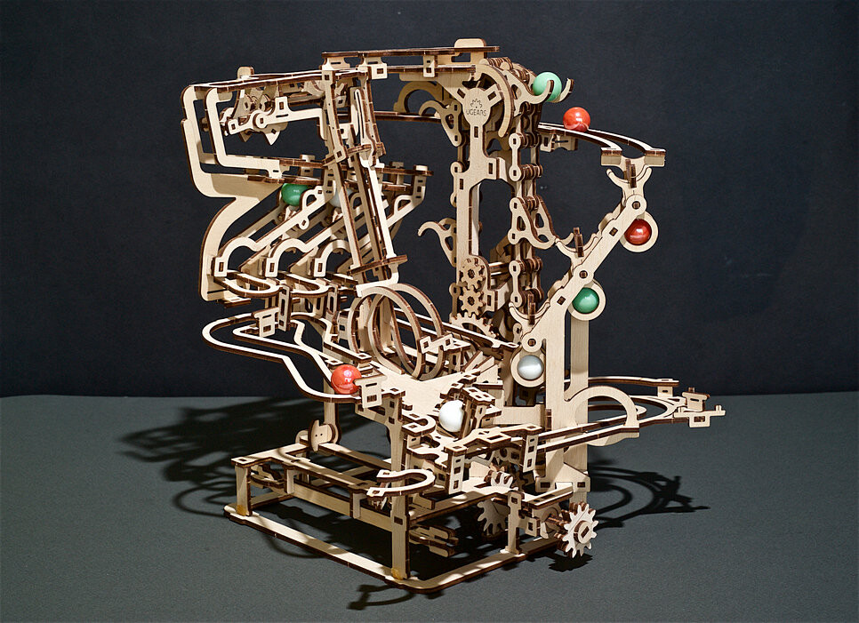 Создание моделей Ugears — отличный способ изучить основные принципы науки и техники, включая принципы биологии, такие как передвижение животных, создание двигателей, а также управление машинами и устройствами. Нам нравится, когда семьи собираются вместе, чтобы работать над нашими моделями.Цепная таль с мраморным бегом