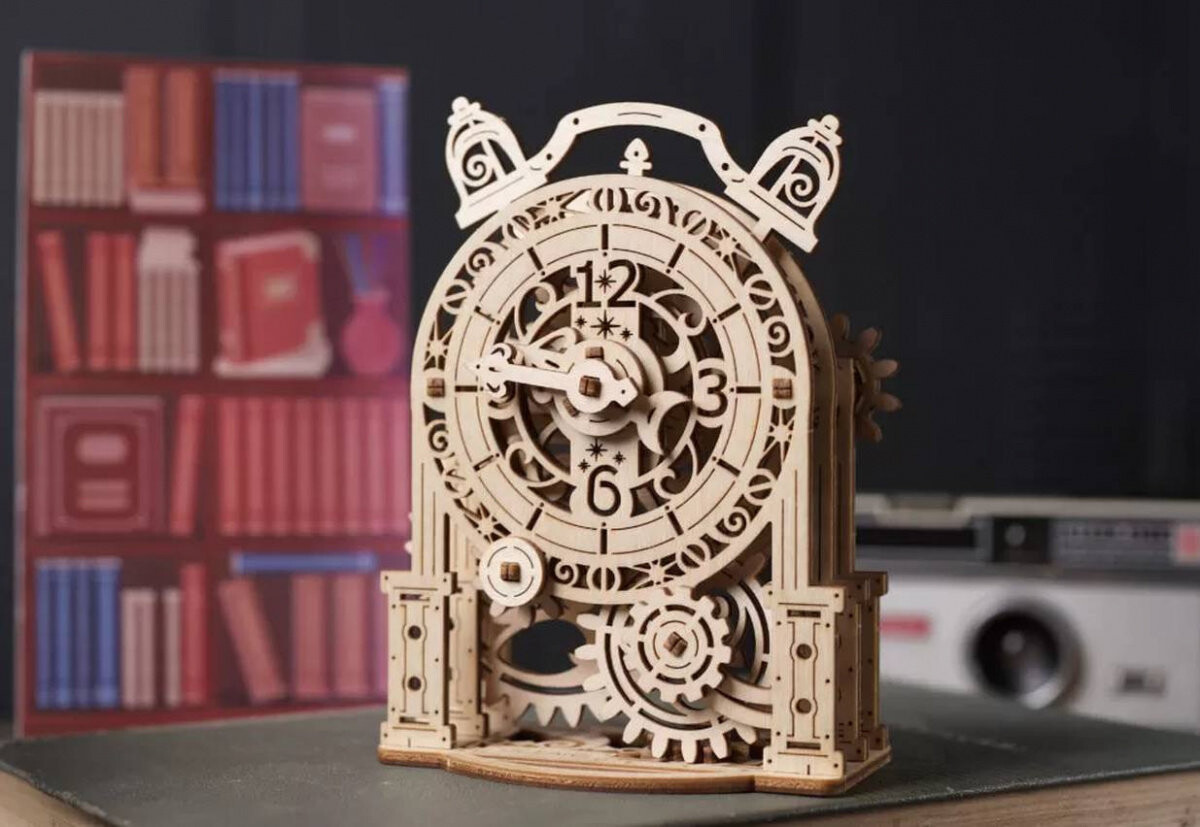Создание моделей Ugears — отличный способ изучить основные принципы науки и техники, включая принципы биологии, такие как передвижение животных, создание двигателей, а также управление машинами и устройствами. Нам нравится, когда семьи собираются вместе, чтобы работать над нашими моделями.Деревянный винтажный будильник