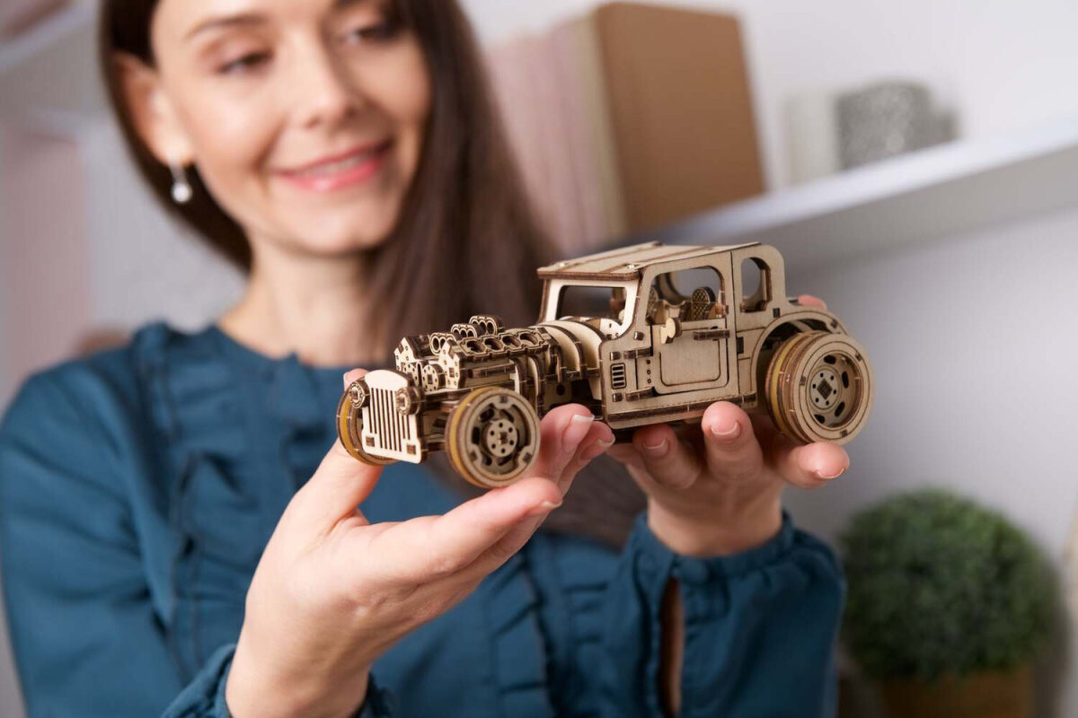 Комфорт и безопасность – это, главным образом, два аспекта, которые характеризуют новая модель от Ugears. Вам не понадобятся никакие дополнительные инструменты или даже клей, чтобы собрать Хот-род своей мечты! В наборе есть все необходимое для игры. Просто аккуратно отделите отдельные элементы от рамы и приступайте к сборке. Это оригинальная альтернатива классическим головоломкам и традиционным бумажным моделям.