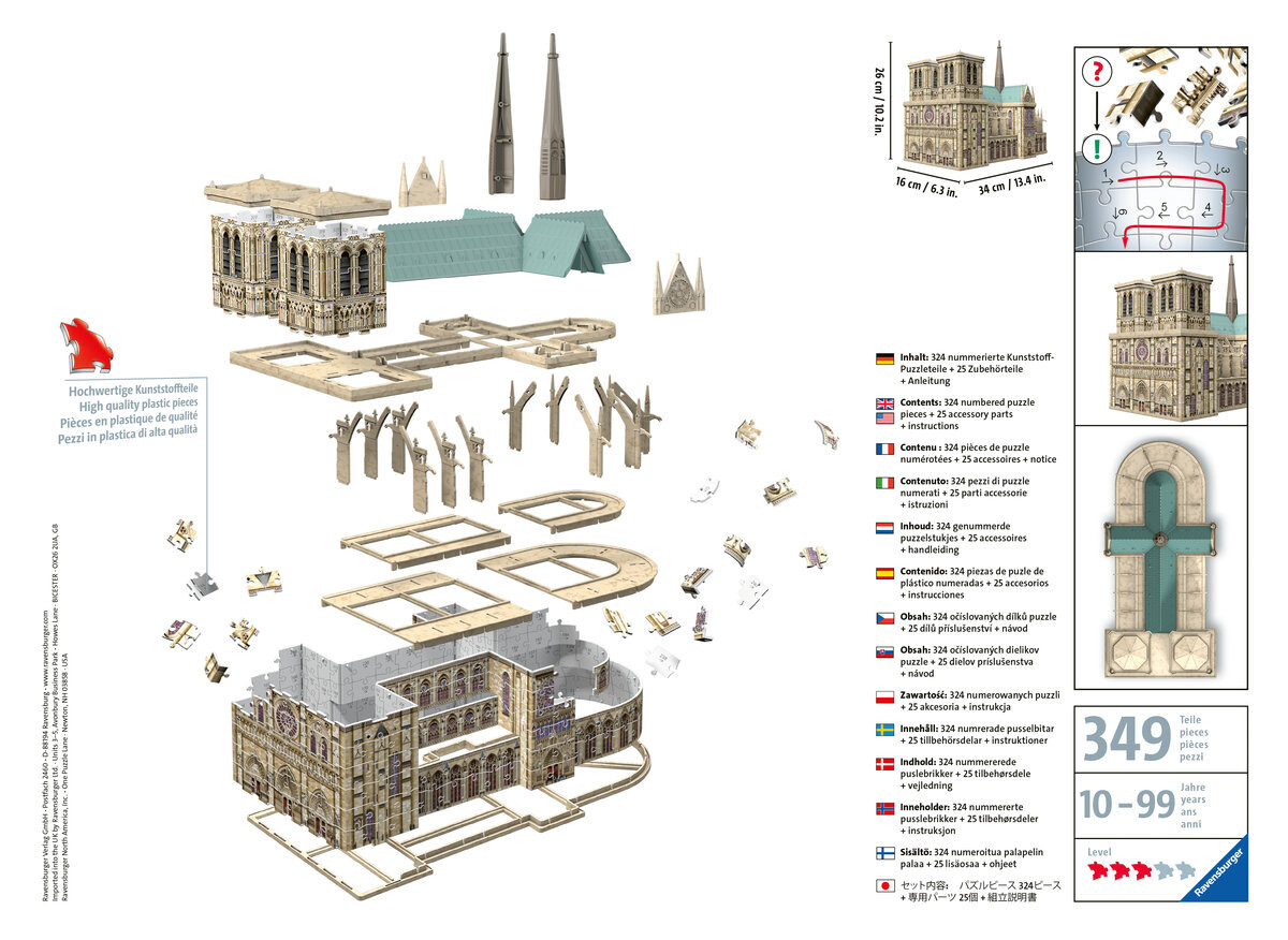 Головоломки Ravensburger позволяют вам приобрести ценные навыки, используя функцию увлекательного обучения. Структура 3D-пазла сочетает в себе приятное с полезным, развивает пространственное воображение, улучшает концентрацию внимания, учит восприимчивости и терпению, а после сборки может использоваться как впечатляющее украшение комнаты. Это также отличное занятие для взрослых и детей и возможность провести время вместе.