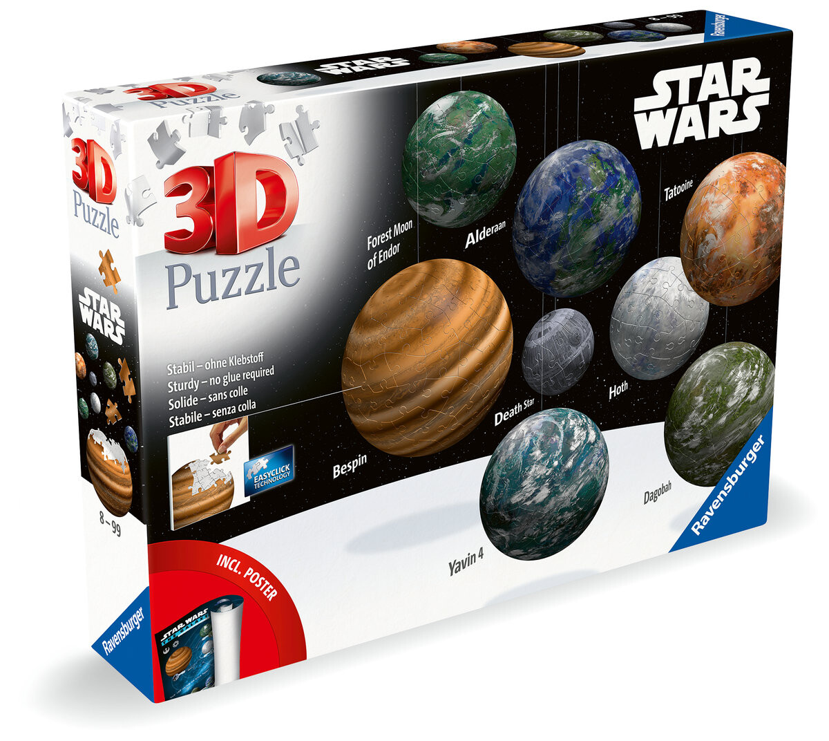 Если вы любите фильмы «Звездные войны», вы обязательно сойдете с ума от этого набора. Планеты доступны для самостоятельной сборки из 3D-пазлов.