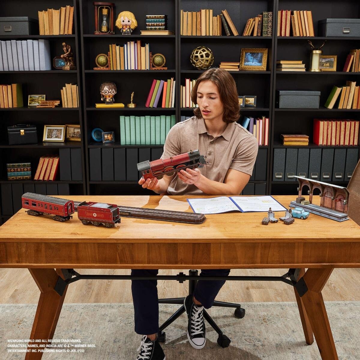 В наборе изображен поезд «Хогвартс-экспресс», известный по книгам и серии фильмов о юном волшебнике.