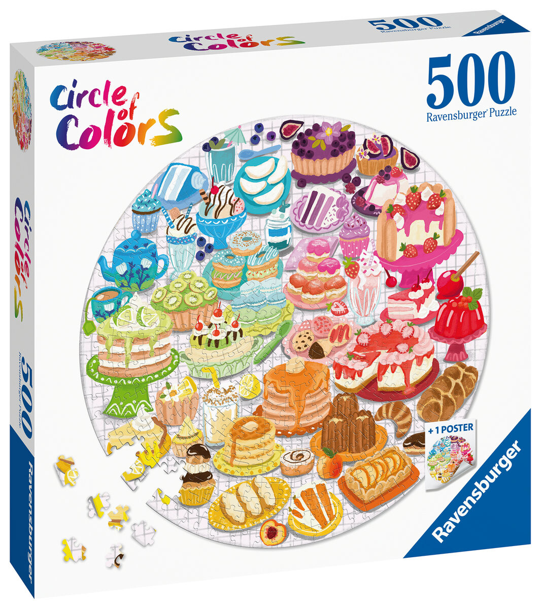 Содержимое коробки:пазл из 500 деталей на тему «Цветовая палитра десертов», постер.