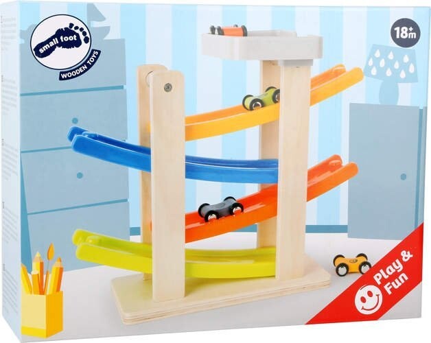 Поместив автомобиль на самый верхний уровень горки, ребенок сможет наблюдать, как он скатывается вниз. Гоночная трасса спроектирована так, чтобы на старте могли поместиться все четыре машины. Эмоции и чудесное веселье гарантированы.