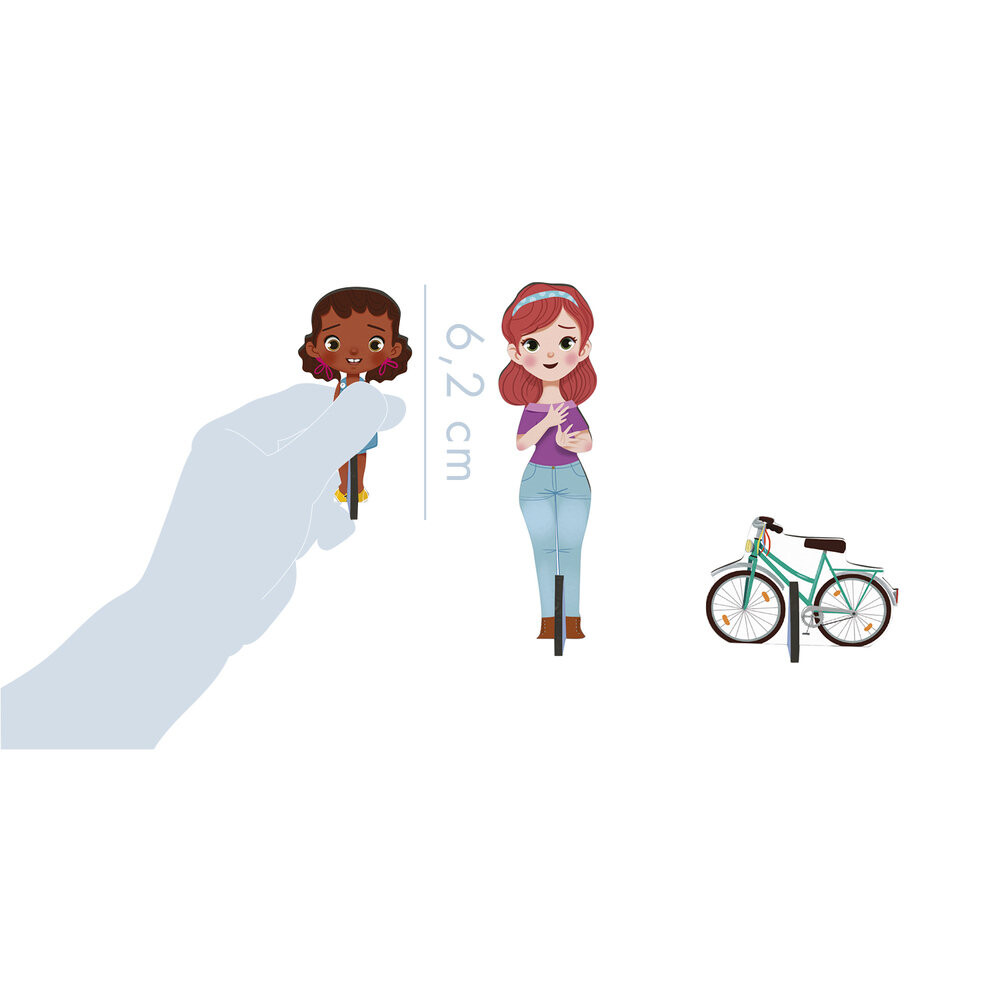 Содержимое: одна конструкция для сборки, инструкции, 5 персонажей и велосипед. Продается в коробке с ручкой, ее очень легко брать с собой.