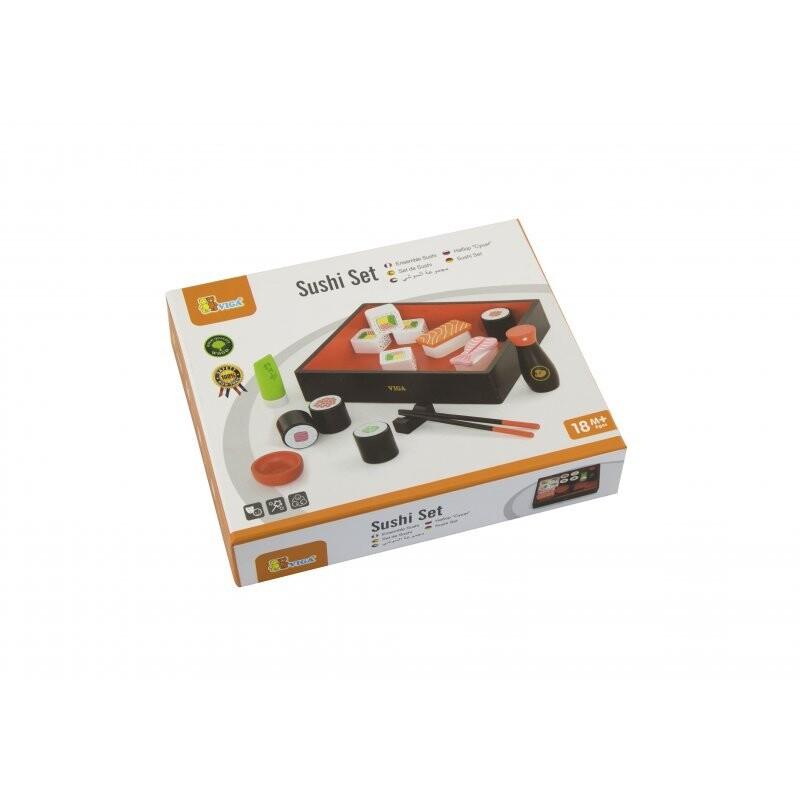 В набор входят: 8 маки, 1 нигири, 2 нигири, миска для соевого соуса, бутылка соевого соуса, палочки для еды, подставка для палочек, васаби