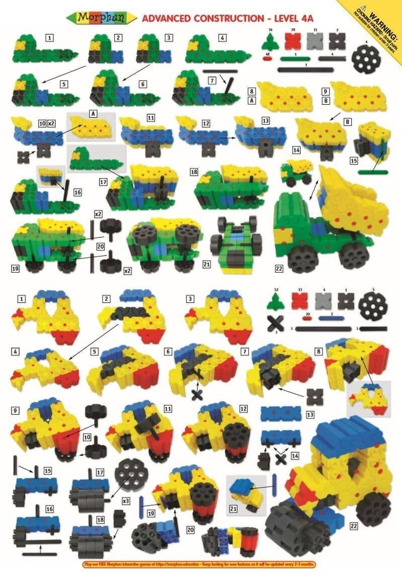 Расширенные блоки предназначены для строителей старшего возраста и содержат элементы меньшего размера. Более сложные инструкции означают часы еще большего удовольствия. Дополнительно набор увеличен на 200 шт. и инструкции в виде буклета. Супернабор конструкторов Morphun AdvancedКонструкторы Morphun Advanced содержат целых 1200 элементов, предназначенных для сборки детьми старше 5 лет. В комплект входят элементы стандартного размера, а также небольшие разъемы. С их помощью ребенок сможет построить множество сложных зданий, животных и машин. Играя с такими блоками, вы выполняете, в частности: в . навыки дизайнерского мышления и стратегического планирования. Прилагаемая инструкция покажет вам, как начать комбинировать элементы для создания более или менее сложных объектов. Это особенно важно для детей которые никогда раньше не слышали об этом типе строительных блоков. Освоив различные связи, ваш ребенок быстро начнет проявлять инициативу в создании собственных произведений.