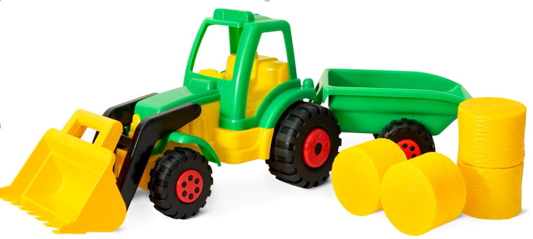 Важнейшие характеристики трактора с прицепом:Трактор и прицеп изготовлен из высококачественного, безопасного и нетоксичного материала, устойчивого к любым погодным условиям. Благодаря этому дети могут играть с ним как дома, так и во дворе, на террасе или в саду.