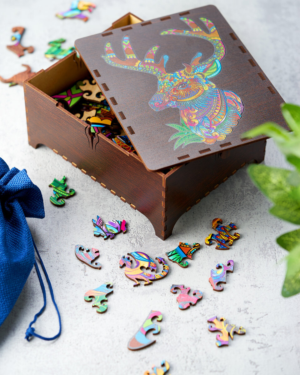 Ищете идею для подарка? Пазлы — это вечный и всегда хороший подарок. В красивой деревянной упаковке, с нежным ароматом свежего дерева, они являются красивым и эксклюзивным подарком и очаровывают с первого прикосновения. Познакомьтесь и полюбите наши деревянные пазлы!