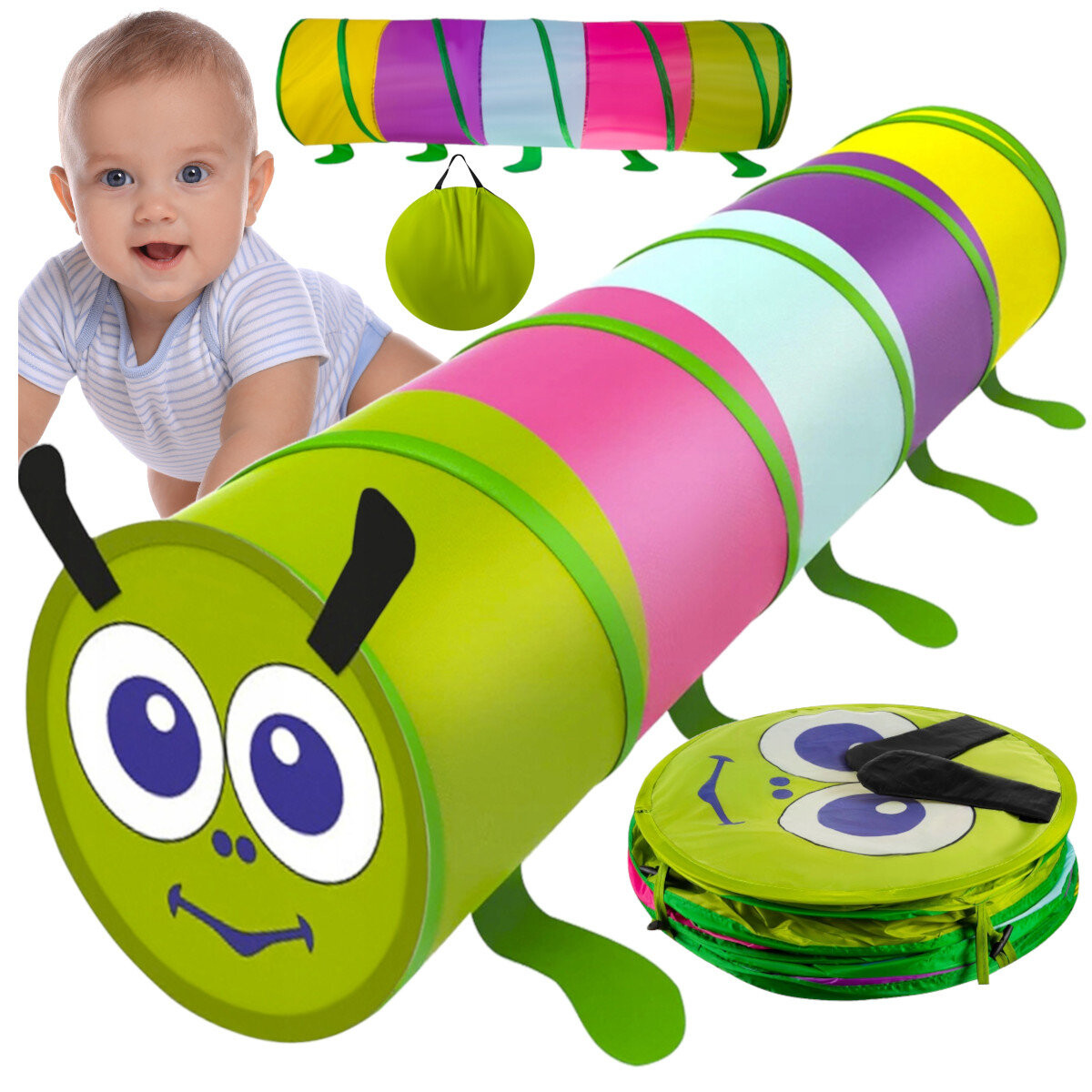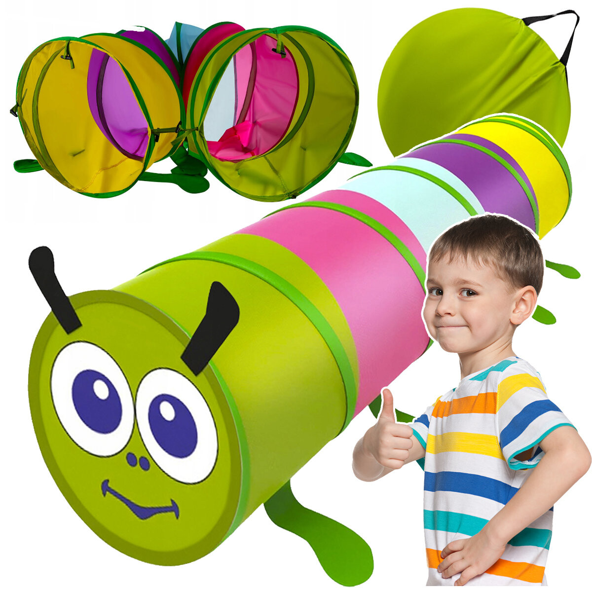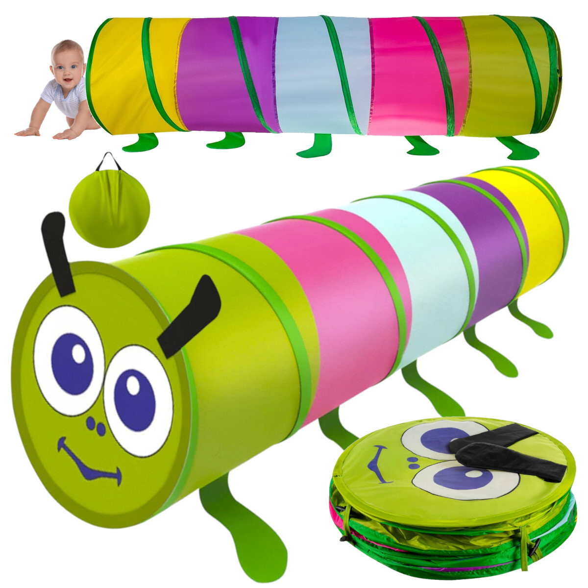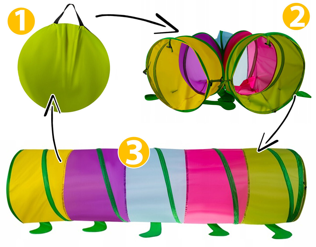 выньте из чехла отстегните застежки готово! туннель развернется самСложить еще проще, достаточно потянуть его от одного конца к другому и положить в чехол. Легко содержать в чистоте
