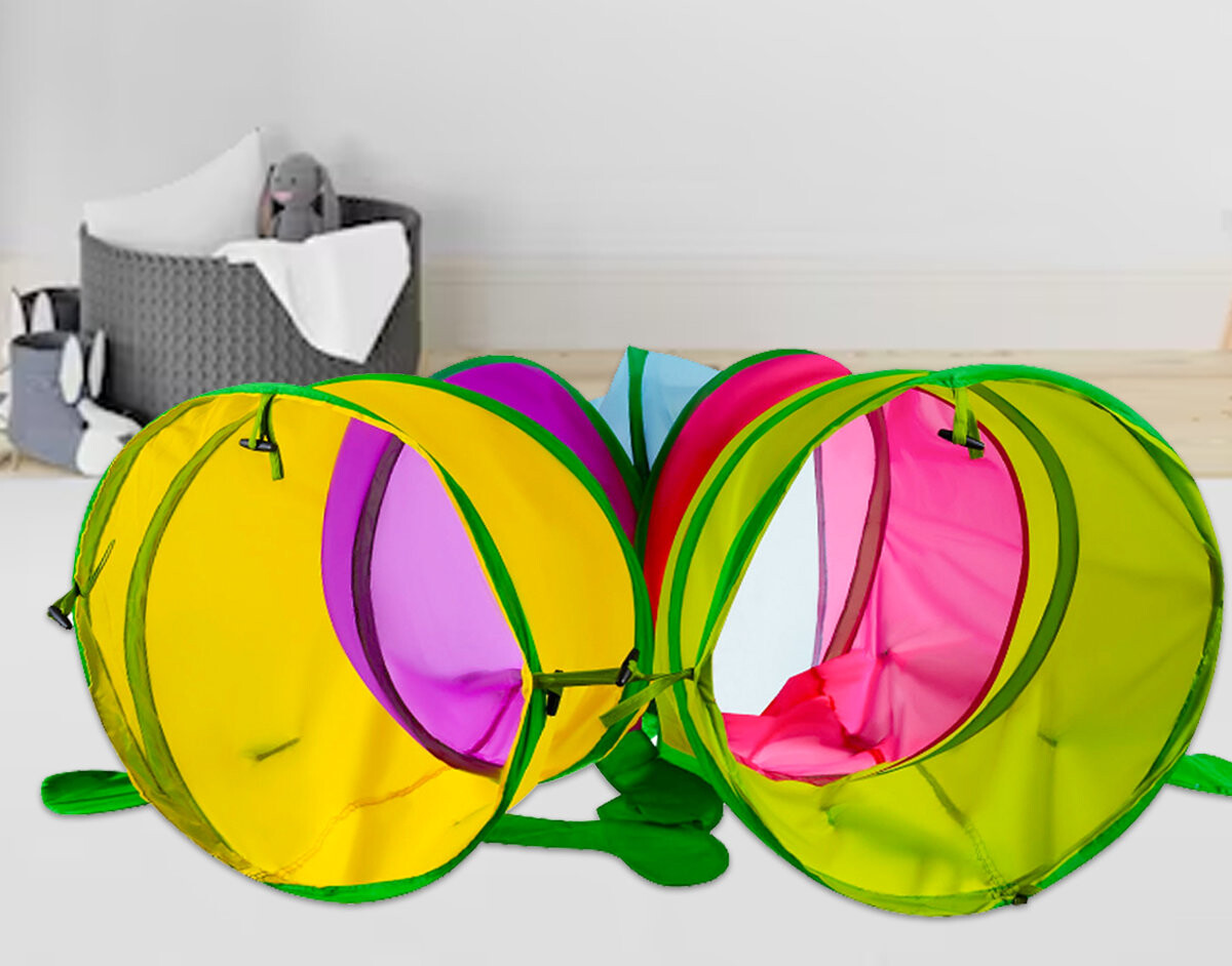 В сложенном виде тоннель помещается в чехол, поэтому его можно легко спрятать или взять с собой в отпуск, на пикник или в гости к друзьям.