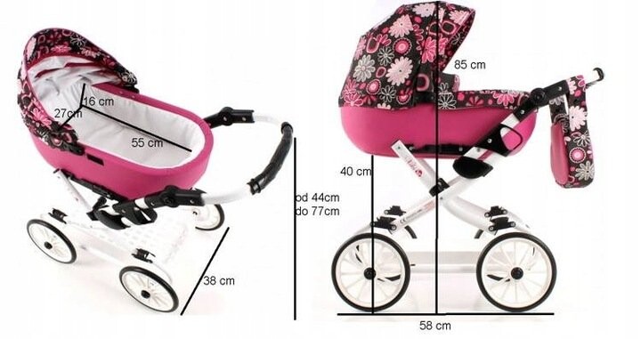 Коляска для куклы ADBOR VIKI - КЛАССИЧЕСКАЯ СКЛАДНАЯ рама на больших поролоновых колесах
