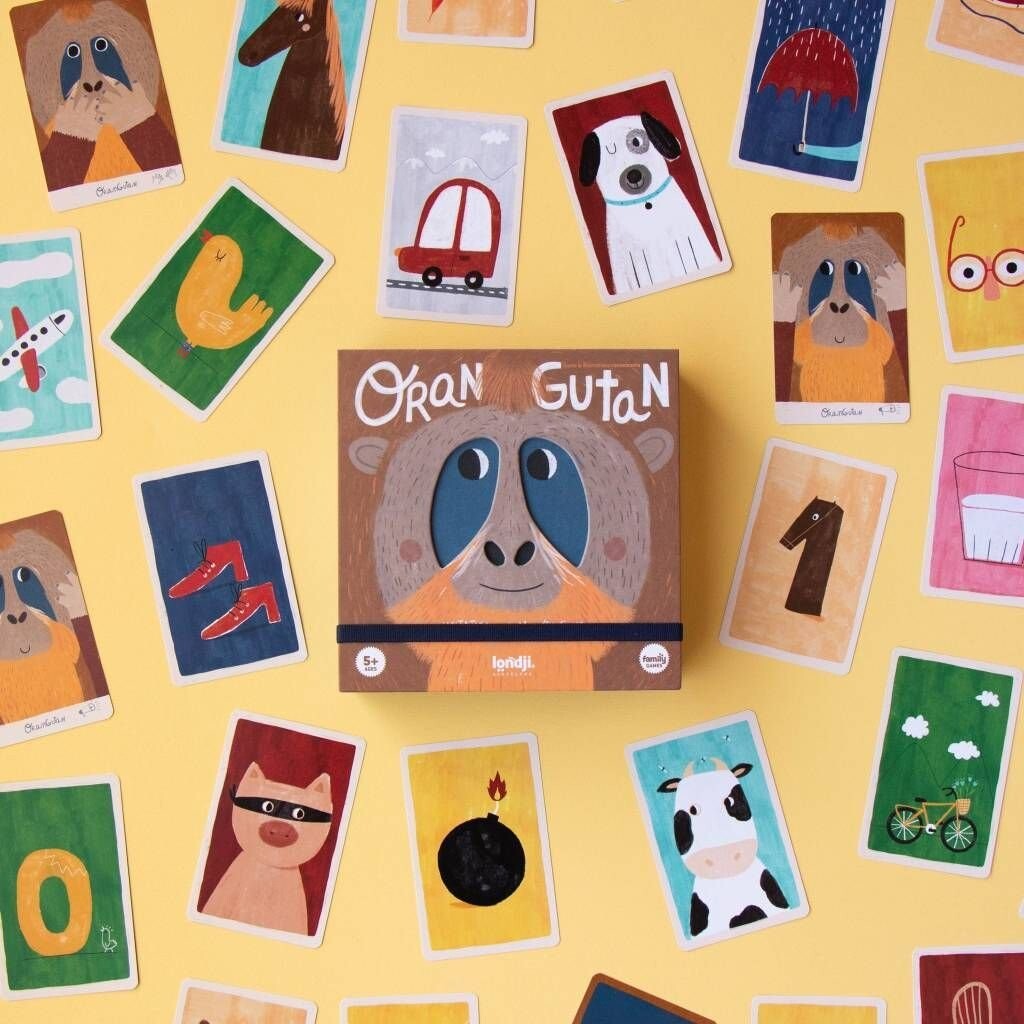 Карточная игра, которая учит концентрации внимания, имитируя орангутанга и других животных и предметы.