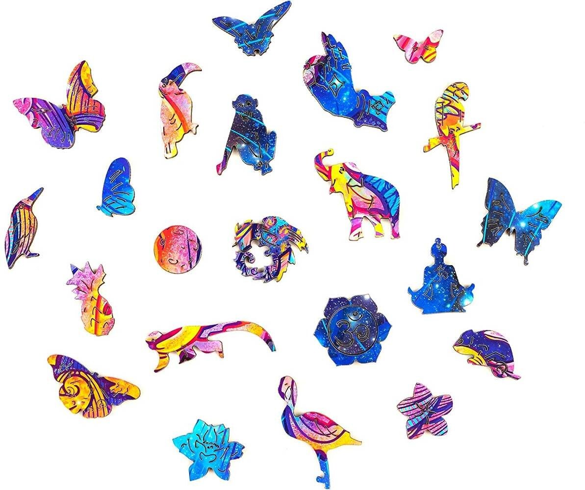 Деревянные пазлы — отличное развлечение как для детей, так и для взрослых. Игра предполагает сборку красочной картинки характерной формы из кусочков головоломки, сделанных из фанеры толщиной в несколько миллиметров.