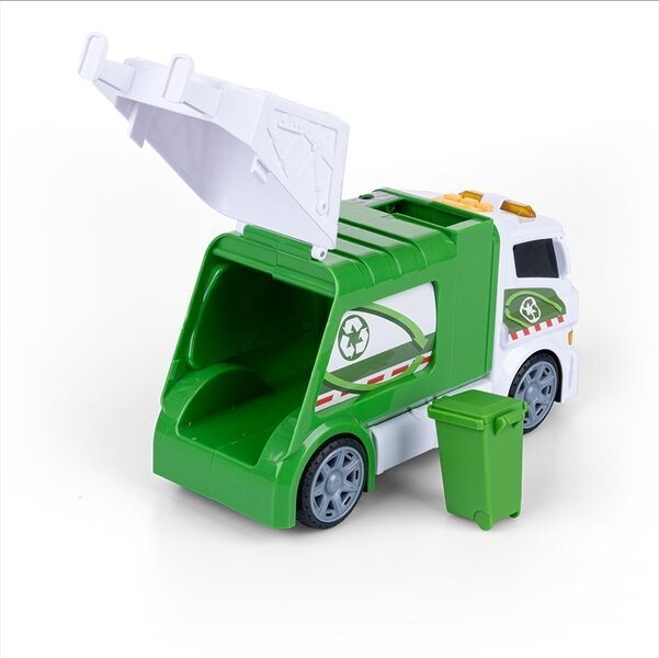 Игрушечный мусоровоз для детей работает от батареек. Автомобиль входит в целую серию автомобилей городского парка. Играя, ребенок может проявить свое воображение и развить интерес к автомобилям и технологиям. Мусоровоз можно использовать как элемент различных игр. что делает его очень универсальным. Игрушка предназначена для детей старше 3 лет.