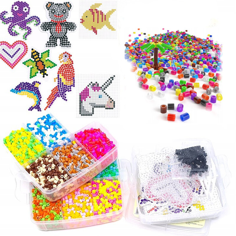 Замечательный набор разноцветных бусин 9000 шт разных цветов, из которых ребенок сможет создавать красивые картинки.