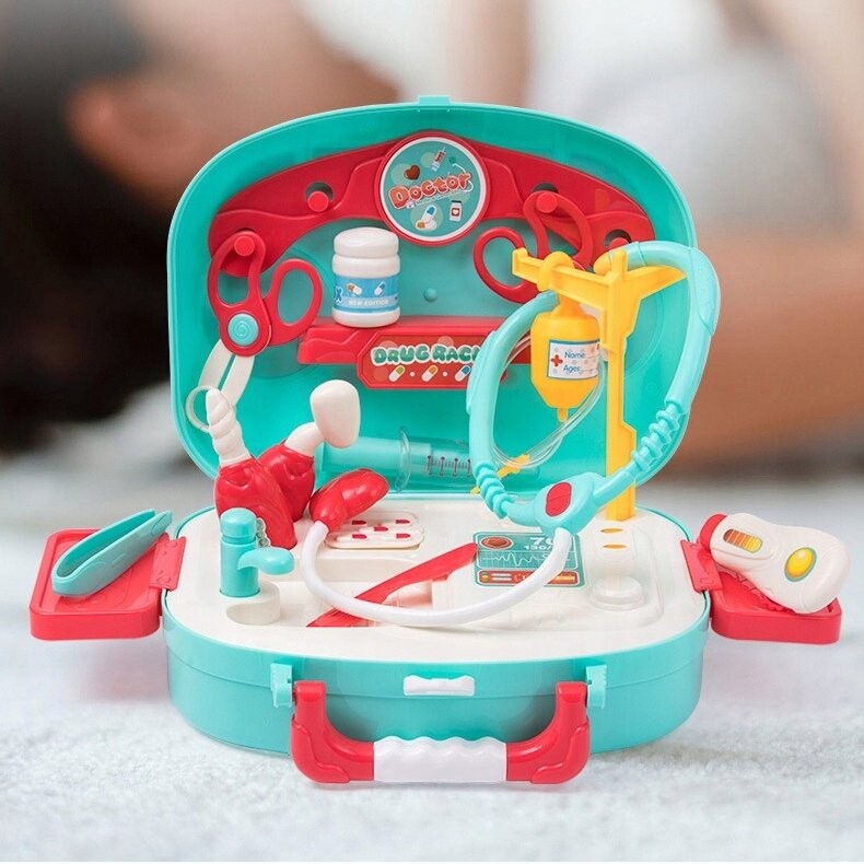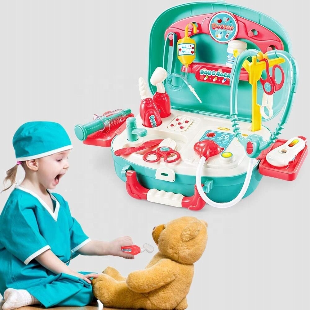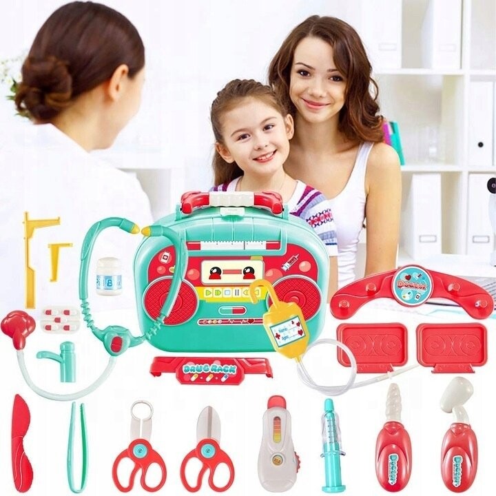 Наверное, каждый из нас «лечил» своих плюшевых мишек или кукол. В качестве термометра мы использовали ручку, а о мониторе ЭКГ можно было только мечтать. ;) Благодаря нашему набору ваш малыш сможет почувствовать себя настоящим доктором! Он наложит повязку, проверит пульс, измерит температуру и «сделает» укол. и, возможно, даже осмотрит вас стетоскопом! Играть вместе так невероятно весело не только детям.Богатая комплектация