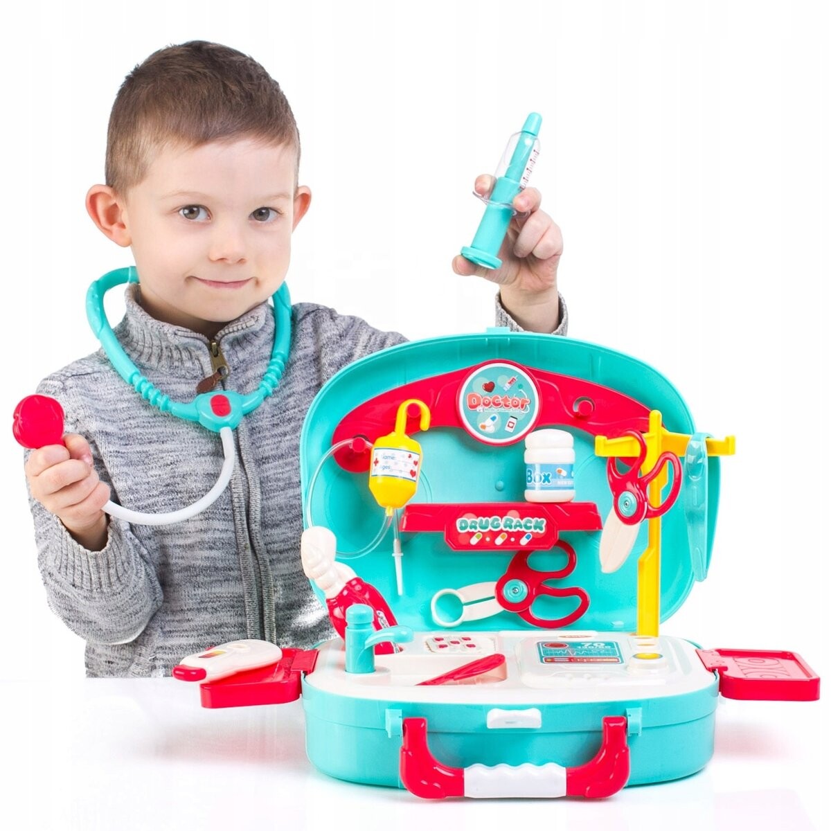 Благодаря набору малыши познакомятся друг с другом с основными медицинскими инструментами и заодно ознакомиться с ними, что, безусловно, облегчит ему посещение настоящего врача.Только польза