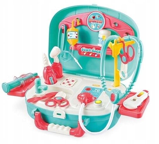 Набор «Маленький доктор» — идеальное предложение для детей, которые любят помогать другим и интересуются работой врачей и медсестер. Оборудование богато оснащено, что делает его пригодным для многих операций по оказанию первой помощи. Все куклы, мишки, статуэтки, а возможно и родители, бабушки и дедушки будут под постоянной и лучшей медицинской опекой! ;)