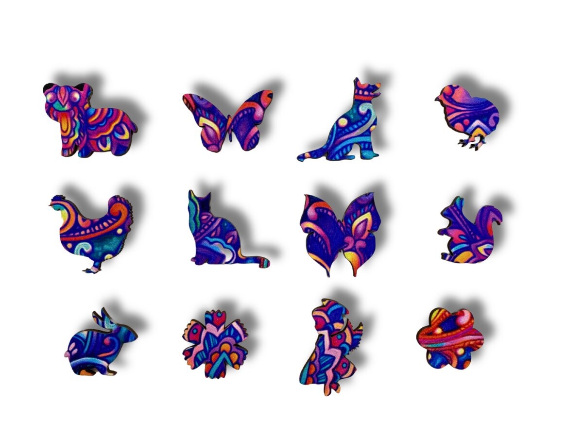 При решении головоломок наш мозг интенсивно работает, задействуя как зрительные, так и логические навыки. Каждая часть наших пазлов имеет уникальную форму, среди которой вы найдете интригующие элементы, узор которых отсылает к Целый пазл - с силуэтами животных и характерными формами. Ищем нужные предметы Сопоставление их вместе и постепенное составление картинки — это процесс, развивающий нашу концентрацию, терпение и восприимчивость.