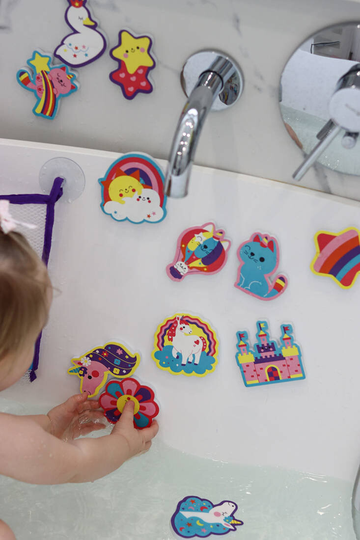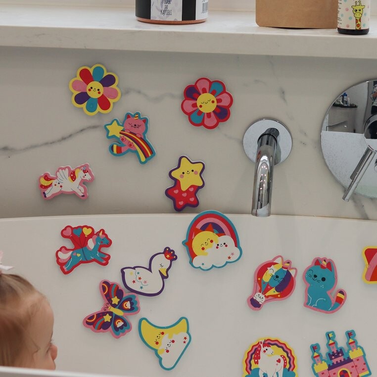 Пененные фигурки для ванны Unicorn Dreams от американского бренда MUDPUPPY изготовлены из мягкого, легко чистящегося и быстросохнущего материала. Помимо единорогов, в число 20 оригинальных фигур также входят: в . цветы, звезды, луна, замок, бабочка, котенок на воздушном шаре или кот с кометой.