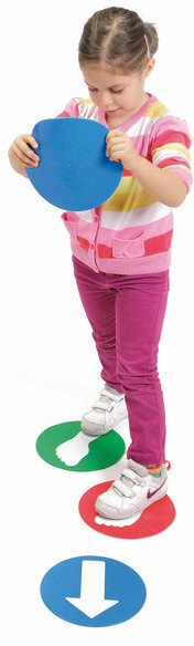 Развивающая игрушка Educo Disks - красочные диски для подвижных игр, изготовленные из мягкой резины, в комплекте с наклеенными знаками (стрелки, ноги, руки).