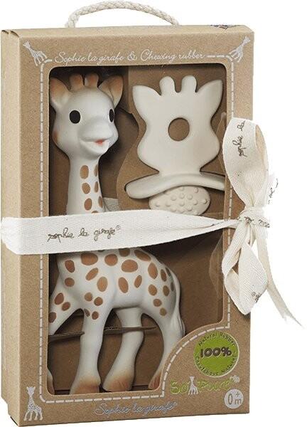- классический прорезыватель «Жираф Софи», ок. 18 см. , изготовлен из 100% латекса - смолы каучукового дерева. Натуральный материал, покрытый пищевой краской, безопасен для жевания, легок и гибок, что предохраняет от болезненных травм при раскачивании. Круглые формы легко брать в руки маленькими ручками. Прорезыватель стимулирует и развивает 5 чувств: зрение - контрастные пятна, слух - пищалка, помещенная в живот, осязание - специфическое прикосновение резины, гладкой, как маминая кожа, обоняние - особый запах натурального каучука, позволяющий отличить прорезыватель Из кучи других игрушек вкус — главное познавательное чувство малыша. Идеальное средство при прорезывании зубов;