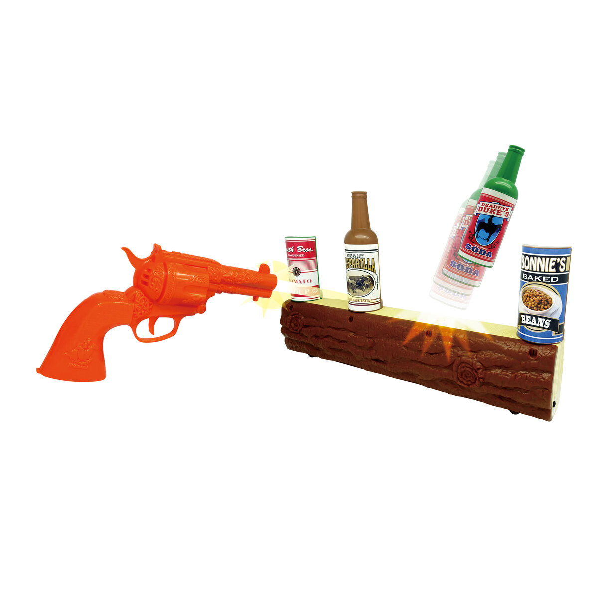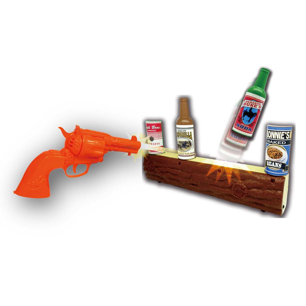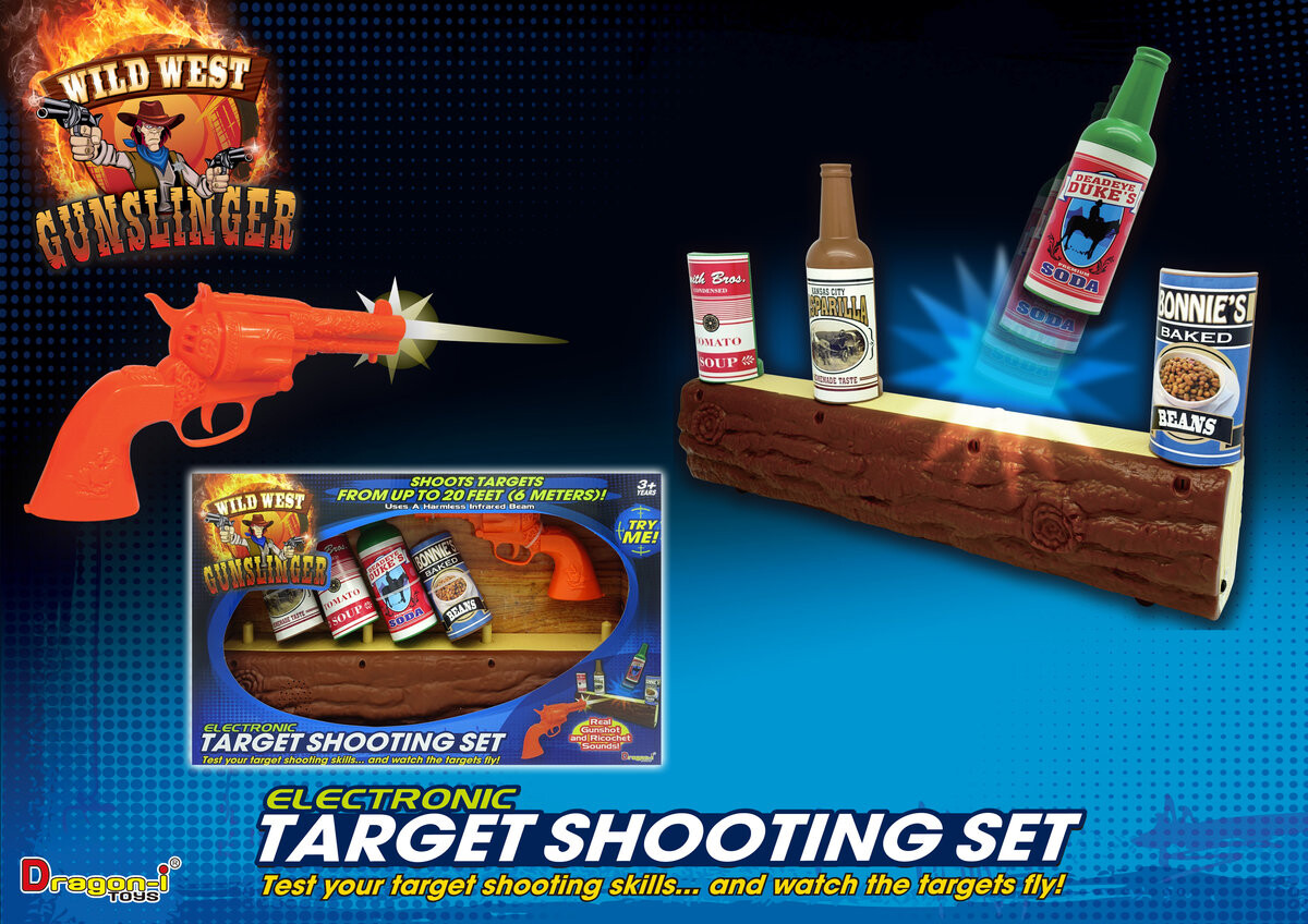 В набор входят мишень, револьвер и декоративные аксессуары, позволяющие детям создать свой собственный Дикий Запад.
