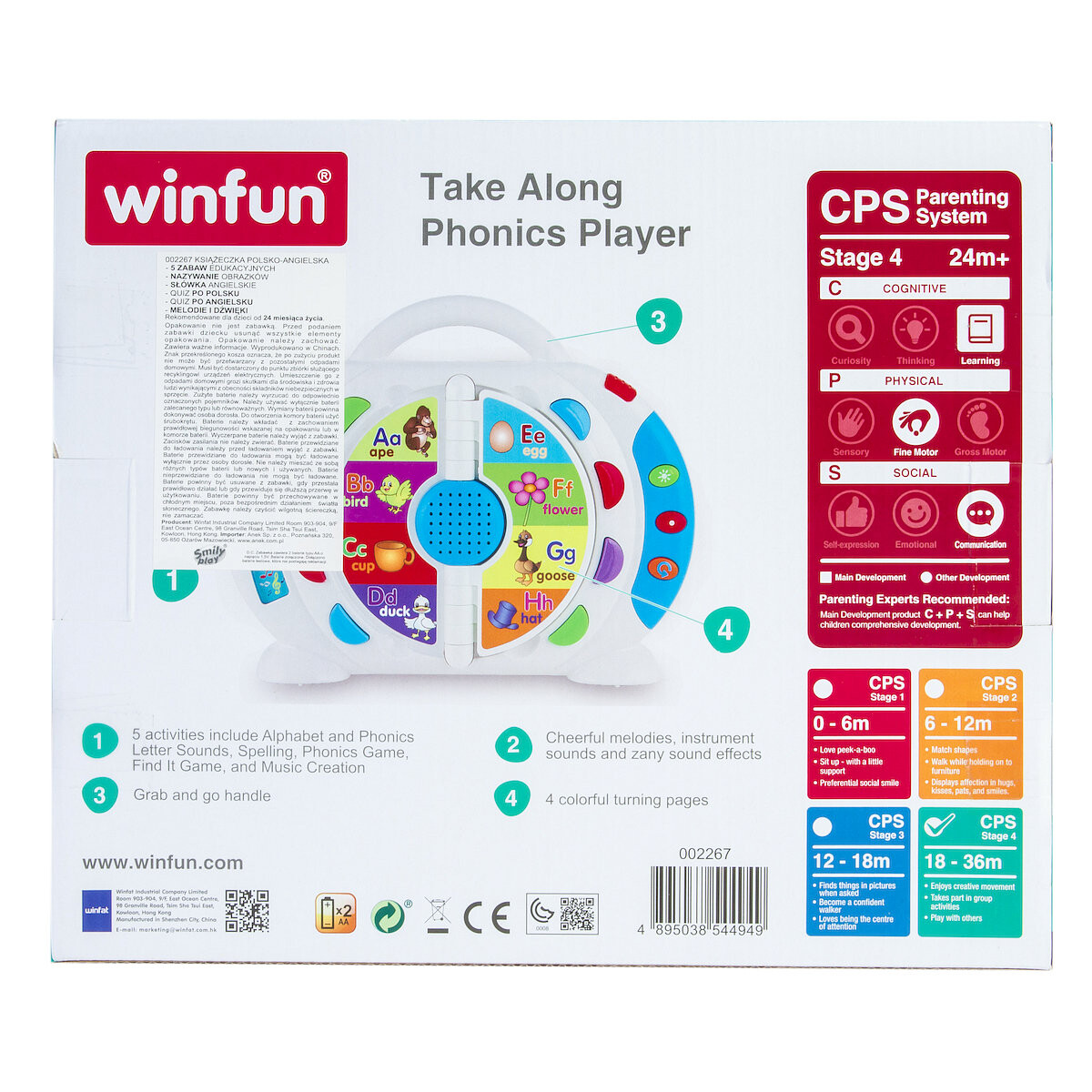 Польско-английская книга Smily Play имеет 5 игровых режимов, которые побуждают детей учиться. Нажимая кнопки, малыши сами решают, какие слова они хотят выучить. Игрушка позволяет ребенку выбирать интенсивность и вид игры в соответствии с возрастом и интересами ребенка.