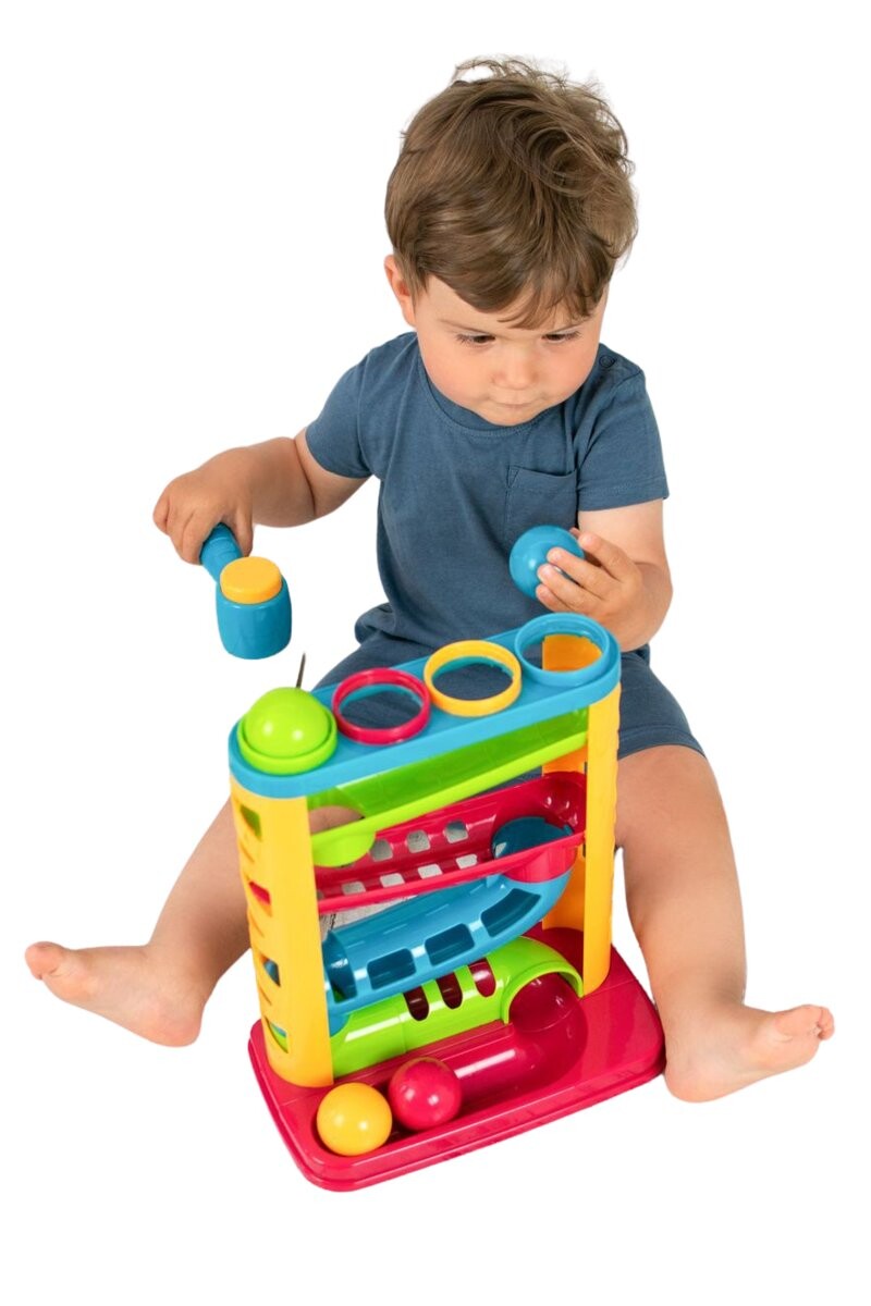 Насыщенные цвета горки и шариков привлекают внимание малыша. Сенсорная горка имеет прочную основу, цвета шариков соответствуют кольцам в верхней части игрушки. Играя со слайдом Smily Play, ребенок будет развивать мануальные навыки и наблюдать причинно-следственную связь, творцом которой он будет.