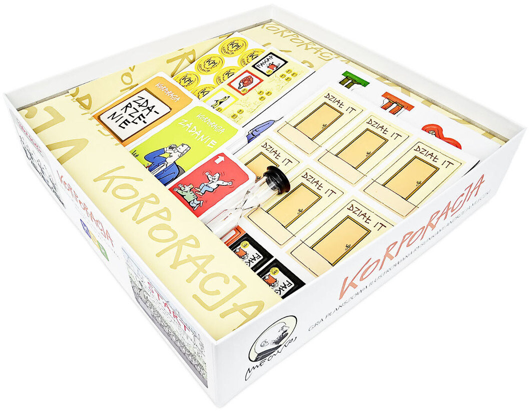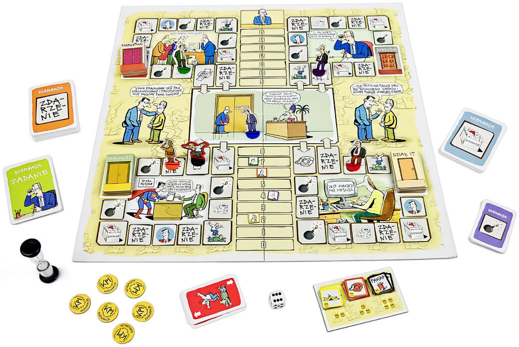 Вот игра который в доступной и реалистичной форме представляет истинную реальность работы в корпорации. Цель каждого игрока — подняться на высшую ступень иерархии, получить повышение по службе и утереть нос своим коллегам. К сожалению, как и в жизни, задача не такая уж и простая! Среди ваших спутников вы найдете карьеристов, мошенников и информаторов, которые максимально усложнят вашу гонку. Вы должны собирать KPI — жетоны ключевых показателей эффективности, которые позволят вам достичь цели. Не волнуйтесь, вы тоже можете помешать им на пути к вершине. А пока вы будете вести словесные баталии, тренироваться в терпении и делать все возможное, чтобы избежать факапа! Для людей, не работающих в корпорациях, это отличный способ выучить специфическую лексику, характерную для этого рабочего места, для работающих - возможность с юмором взглянуть на себя и своих друзей. Неважно, сколько препятствий вы встретите сколько раз вы идете в офис или теряете вещь, которую нужно доставить начальнику. Ваша цель — получить повышение, и это все, к чему вы стремитесь!Иллюстрированная настольная игра. Анджей Млечко