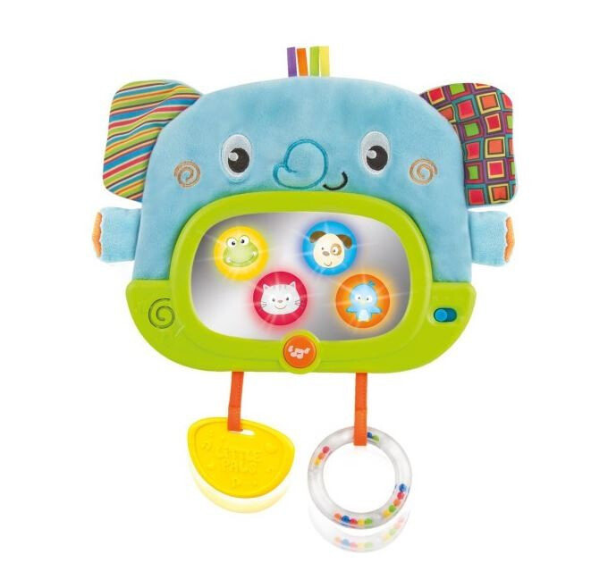 Слон – игрушка, которая будет сопровождать вашего малыша с раннего утра и до поздней ночи. Игрушку легко прикрепить к кроватке. Имеет складную подставку для игры на животе. У слона есть автоматическое отключение (30 секунд днем и 3 минуты ночью). Это игрушка, полная сюрпризов. Спрятанные фигурки животных появляются на безопасном зеркале и мягко светятся. Шорох в ушах стимулирует слух и осязание. Прорезыватель успокоит воспаленные десны. Гремящие шарики привлекут внимание своим цветом и звуками. Текстуры материалов показывают, что что-то может быть мягким или твердым, гладким или шероховатым.