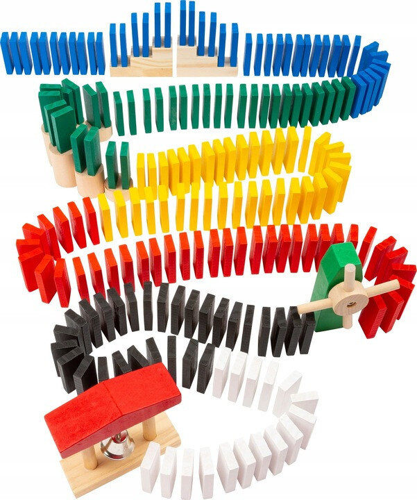 Игра в домино доставит удовольствие каждому. Из 490 разноцветных деревянных деталей домино вы можете построить целую веселую полосу препятствий. Дополнительные деревянные фигуры и лестницы повышают уровень сложности. В конце ворота с маленьким колокольчиком ждут, пока упадет последний кусок домино. Юные любители DIY станут мастерами-строителями в этой игре, которая бросит вызов их навыкам концентрации и раскроет творческий потенциал. Их сборка увлекает и увлекает детей и взрослых на многие часы, а весь набор прослужит многим поколениям. Игрушка стимулирует творчество. пространственное мышление и развивает ручные навыки.Характеристики товара: