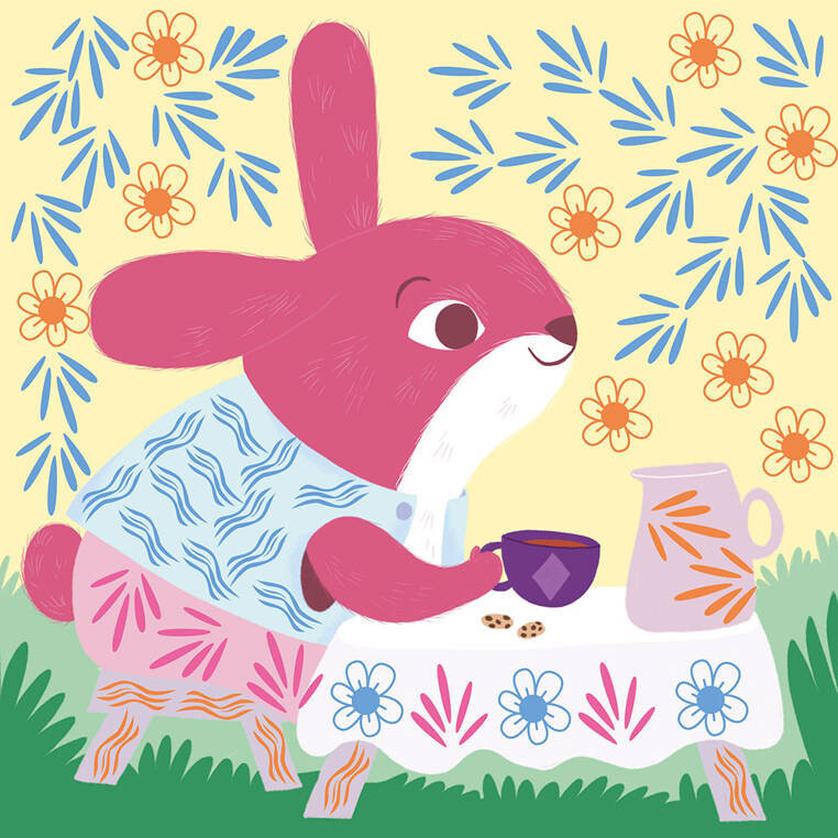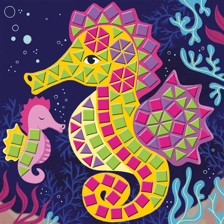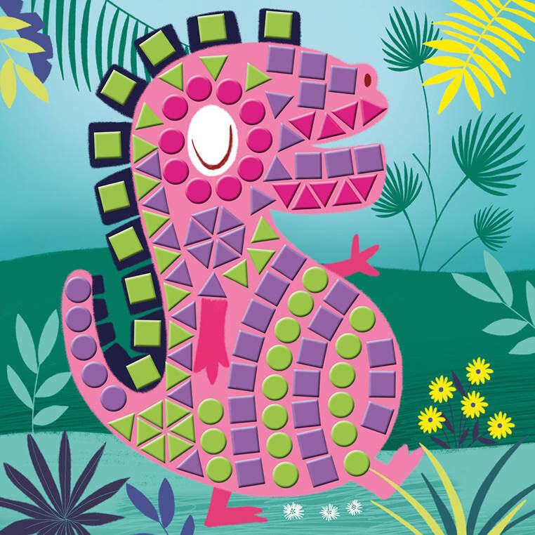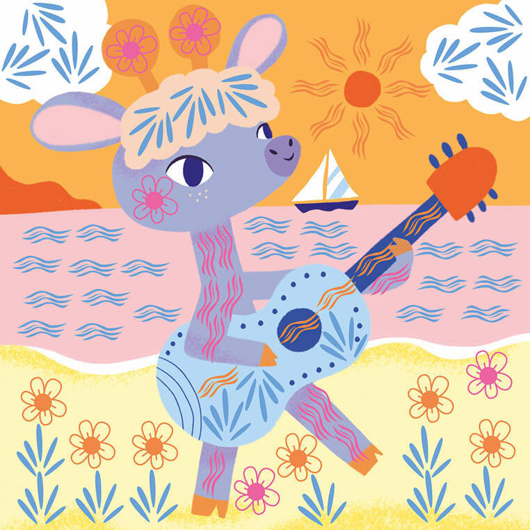 В комплект входят 8 картинок с изображением милых животных в различных ситуациях, в том числе: в . лиса на пляже, морские коньки, медведь у костра или альпака, играющая на гитаре. 4 доски можно украсить с помощью пенопластовых наклеек геометрических фигур, входящих в набор (4 листа в 3 цветах). Остальное - с помощью штампов (3 штуки) или чернильных палочек.