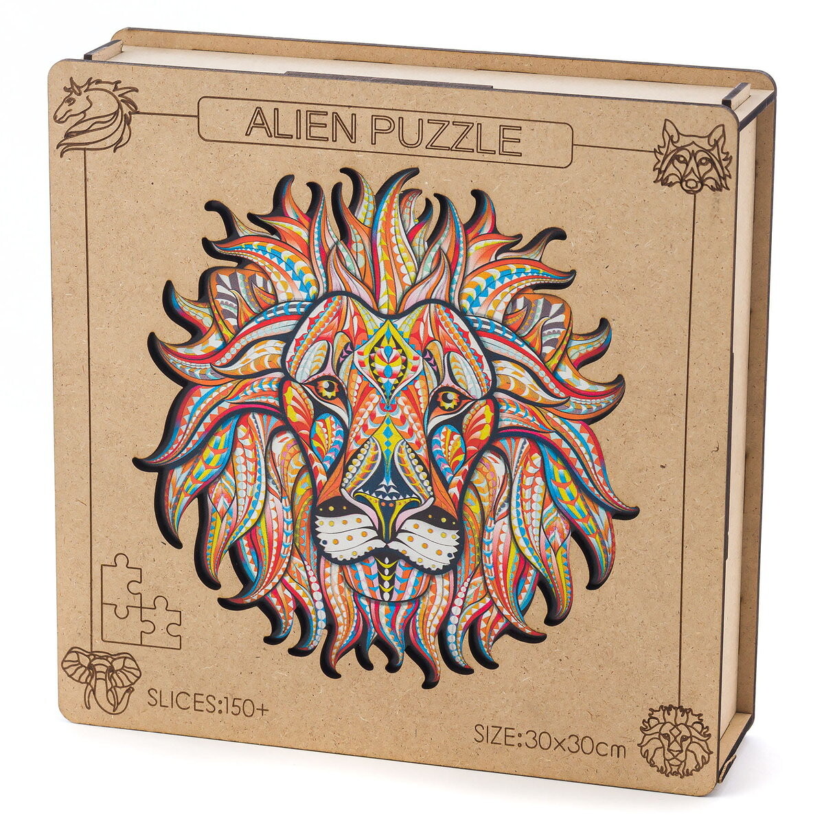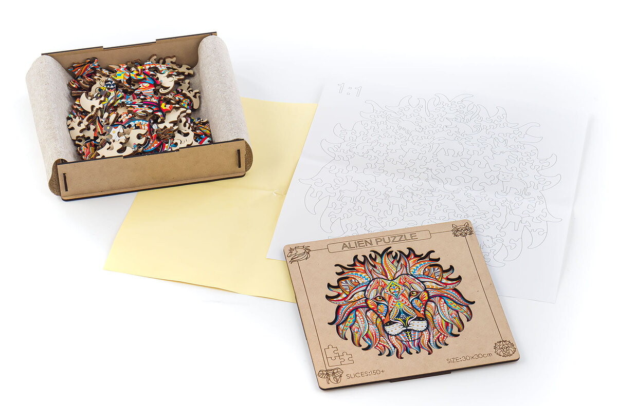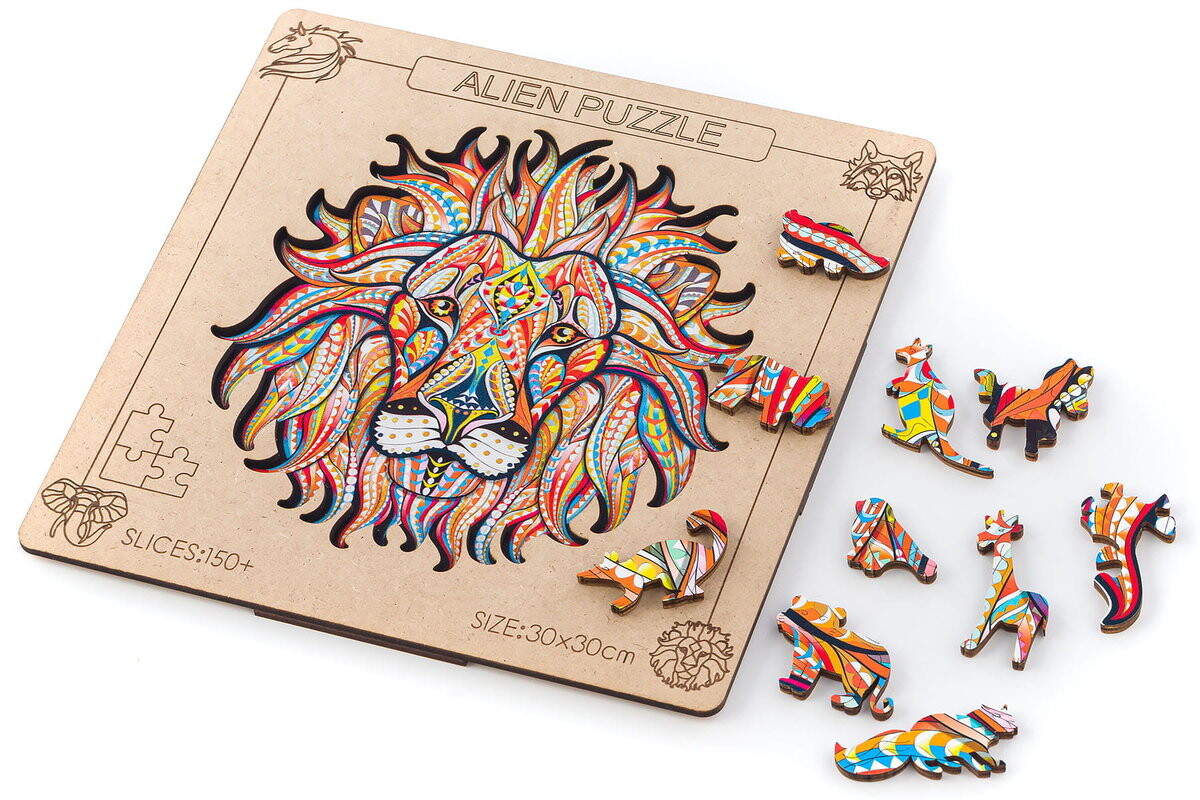 Творческое развлечение, которое стимулирует воображение и концентрацию. Деревянные пазлы предназначены для детей постарше и взрослых из-за сложности головоломки. У головоломок нет концов и прямых углов, поэтому нам придется проявить немного больше изобретательности при их сборке. Основная тема деревянных пазлов – природа, поэтому отдельные детали пазла имеют форму животных разных видов, которые создают образ в виде льва.Характеристика и состав набора: