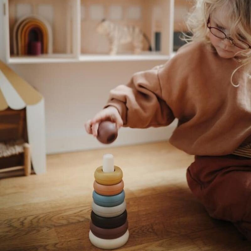 Игрушки для строительства башен и пирамид помогают развивать моторику рук и мозга у детей, начиная примерно с 6-месячного возраста. Базовые навыки, полученные при решении, становятся основой для более сложных задач в будущем, таких как рисование и письмо. Игра со сложенными пирамидками помогает детям изучать языки.
