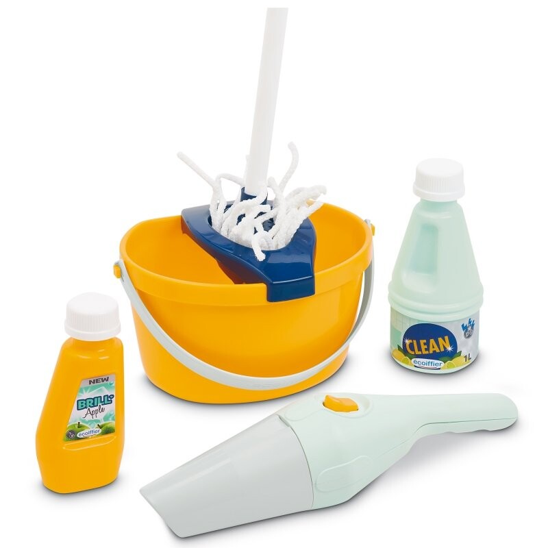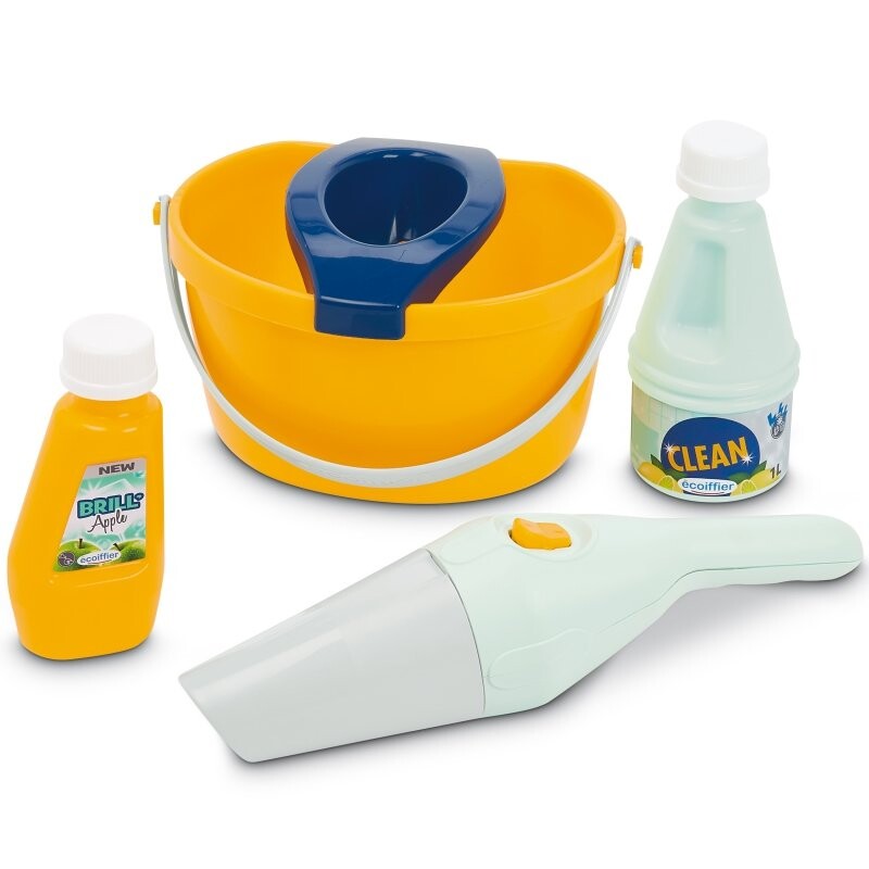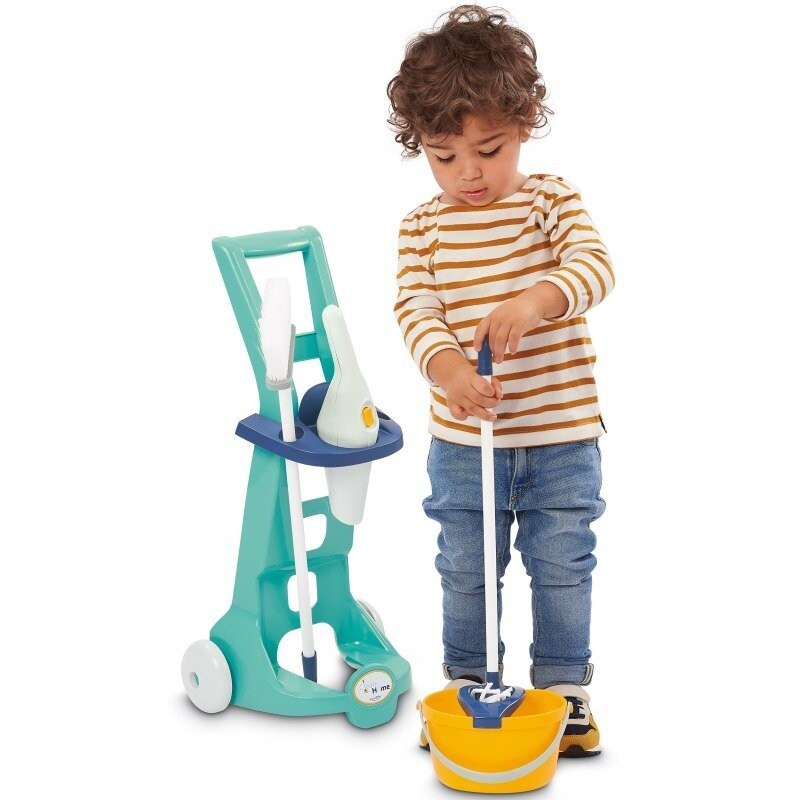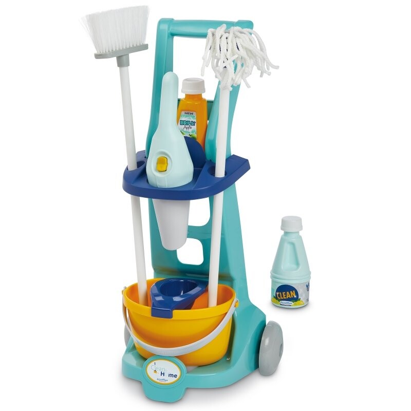 EC Тележка для уборкиТележка для уборки с 8 аксессуарами, включая ведро, ручной пылесос, щетку, швабру и моющие средства. Размеры: 21x26,5x56 см, 36 м+.
