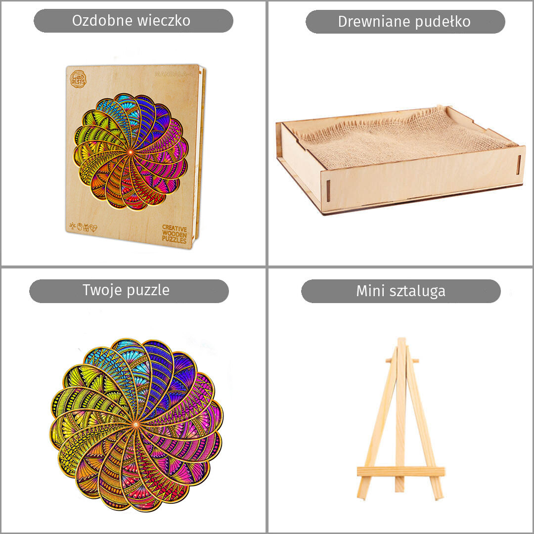Ищете идею для подарка? Пазлы — это вечный и всегда хороший подарок. В красивой деревянной упаковке, с нежным ароматом свежего дерева, они являются красивым и эксклюзивным подарком и очаровывают с первого прикосновения. Познакомьтесь и полюбите наши деревянные пазлы!ДЕРЕВЯННЫЙ ПАЗЛ - МАНДАЛА 2